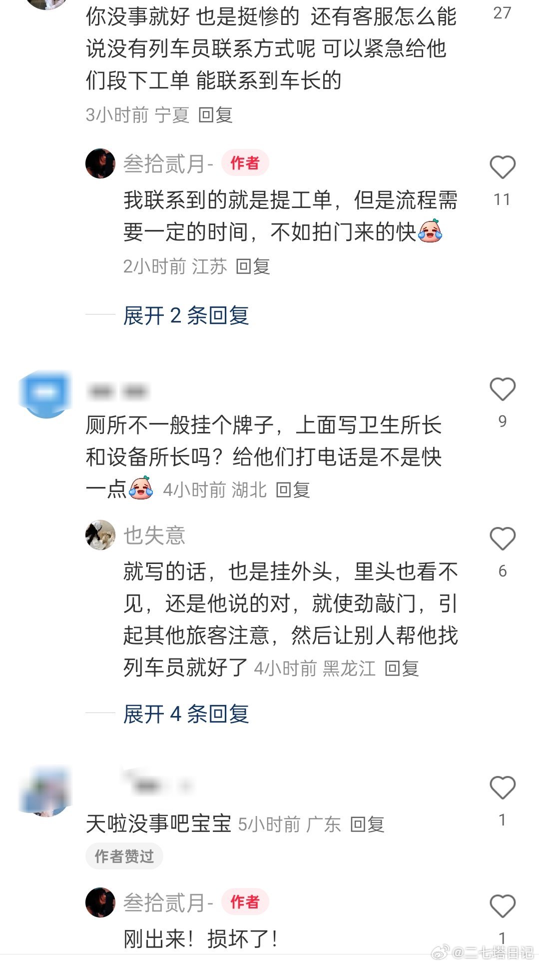 一位网友叙述自己被困高铁厕所里,持续敲击厕所门,吸引了乘务人员注意,最后锁开了,被放出来了。真的是,啥事儿都能够遇见
