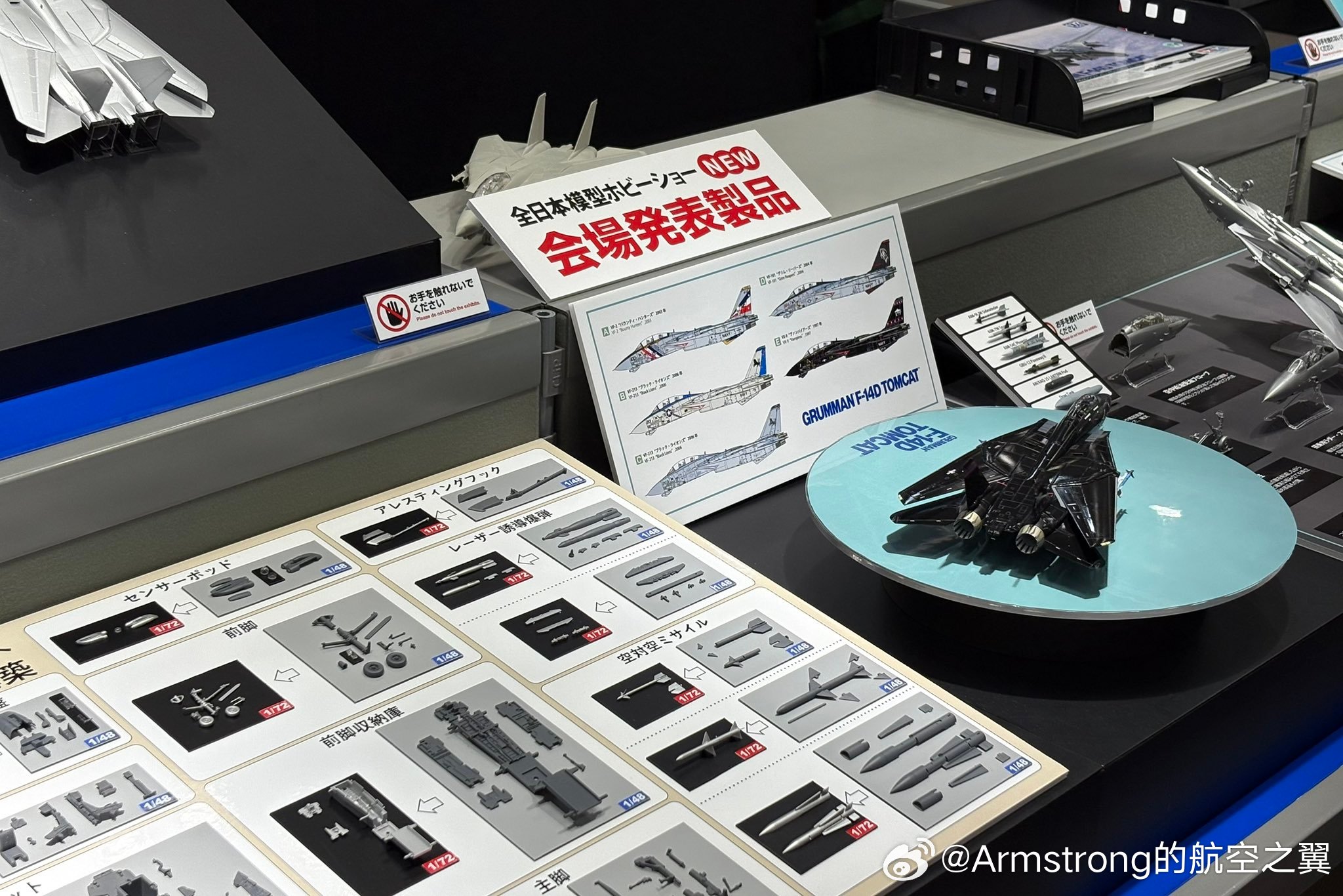 静冈模型展上田宫推出1/72 F-14新金,应该是其48比例的缩小版,首发5种涂装,带机翼联动机构。 ​​​