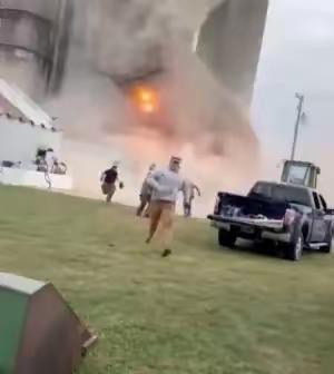 美国爆炸事件 美国伊利诺伊州发生惊人一幕:一座装满大豆的粮仓突然坍塌,180万磅(约816吨)的大豆如洪流般涌出,扬起巨尘,伴随火光四射,周边人群慌忙逃窜。 据悉,此时此刻,大豆正处于滞销状态,炸掉这座粮仓,不仅可以消耗库存,还可以获得保险赔偿,实在是太划算了。画面中的火光四射,不知道是否引发其他意外呢?