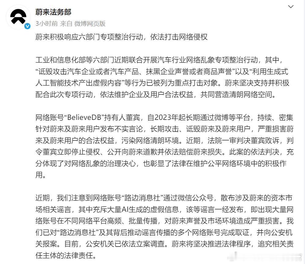 蔚来法务部出手了,这次速度还挺快[并不简单]