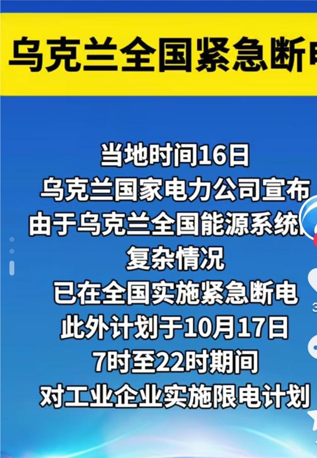 乌克兰全国断电 2025年10月17日,一场突如其来的能源危机席卷乌克兰。当天