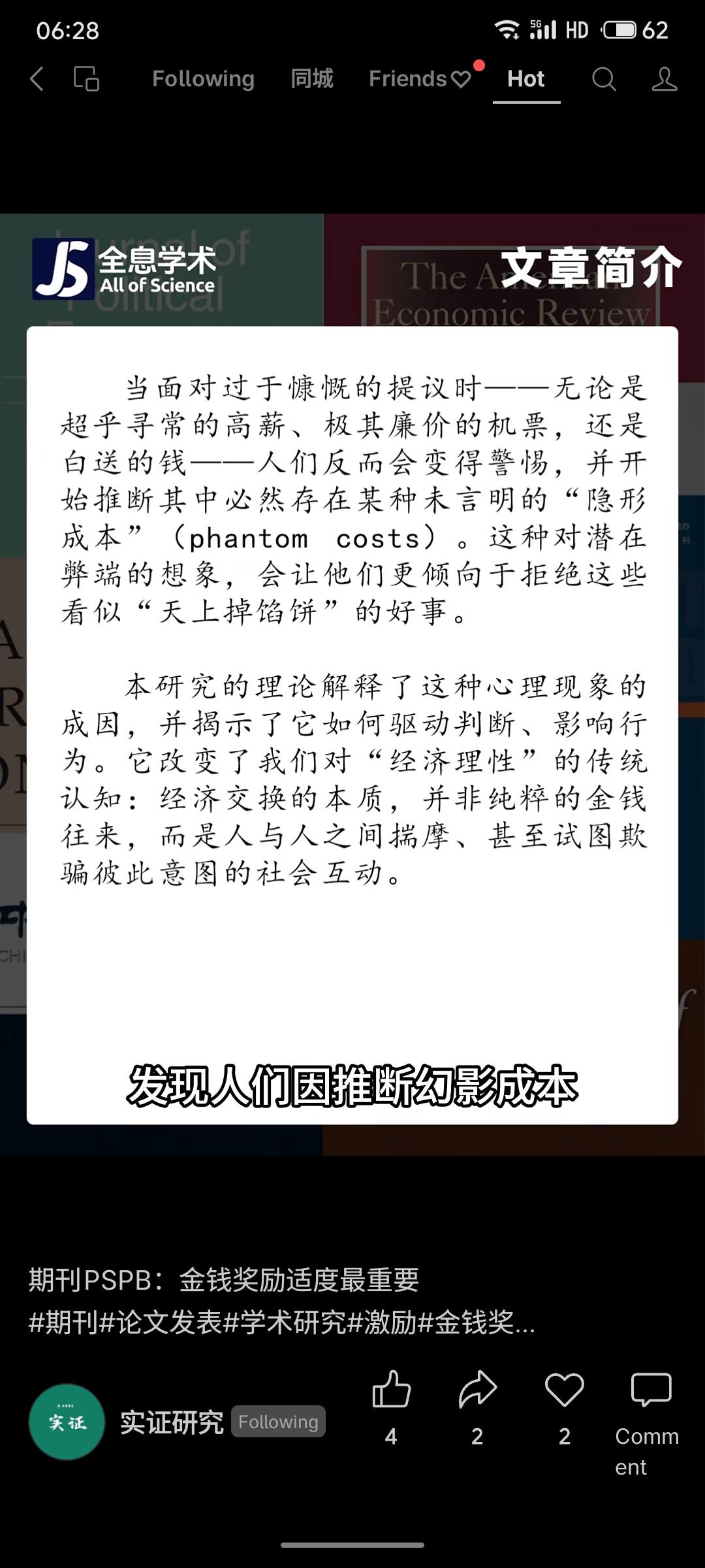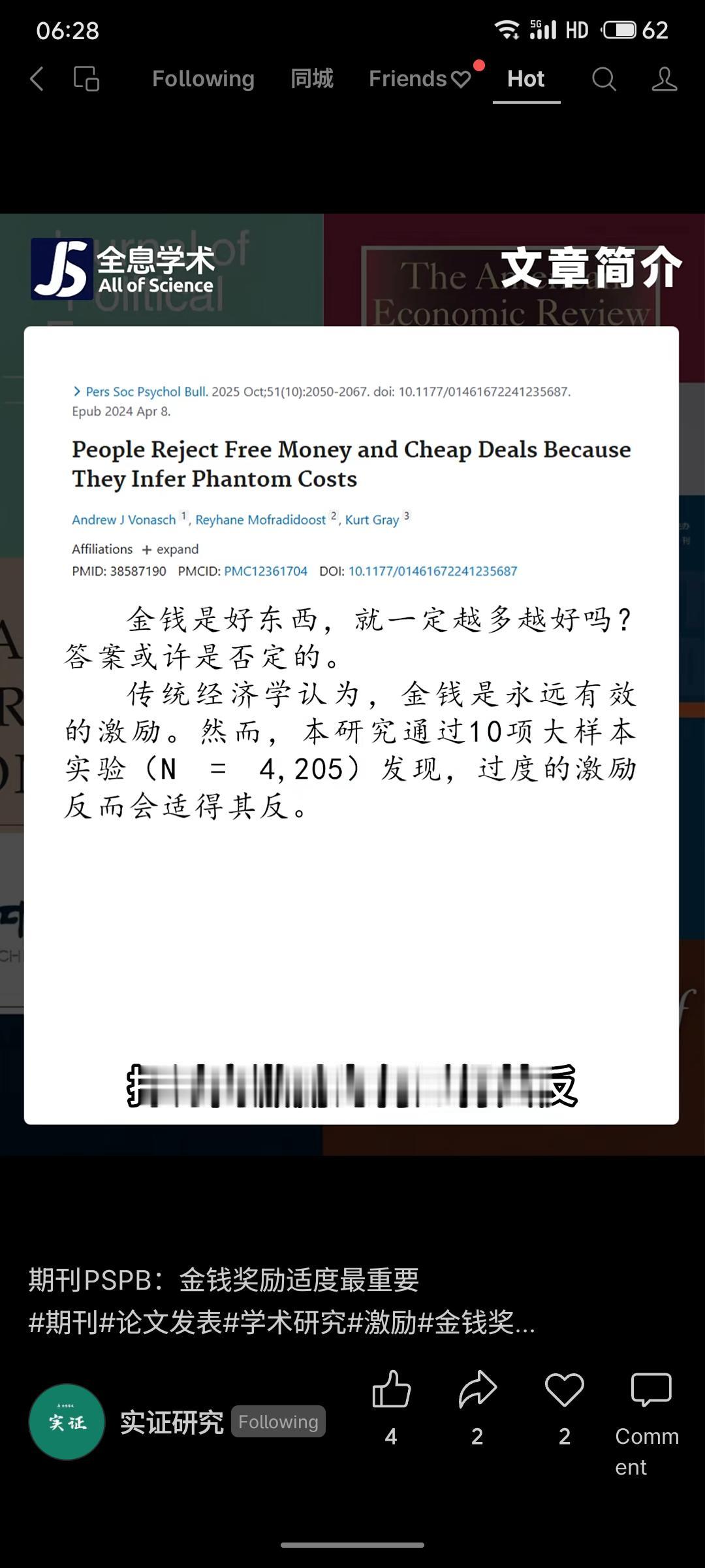 一项发表于《PSPB》期刊的研究通过10项实验发现,过高的金钱激励可能适得其反。当人们面对过于优厚的报酬或免费利益时,会产生怀疑,推断其中存在未言明的“隐形成本”,从而倾向于拒绝。这表明经济决策不仅是理性计算,更是对社会意图的揣测与互动。