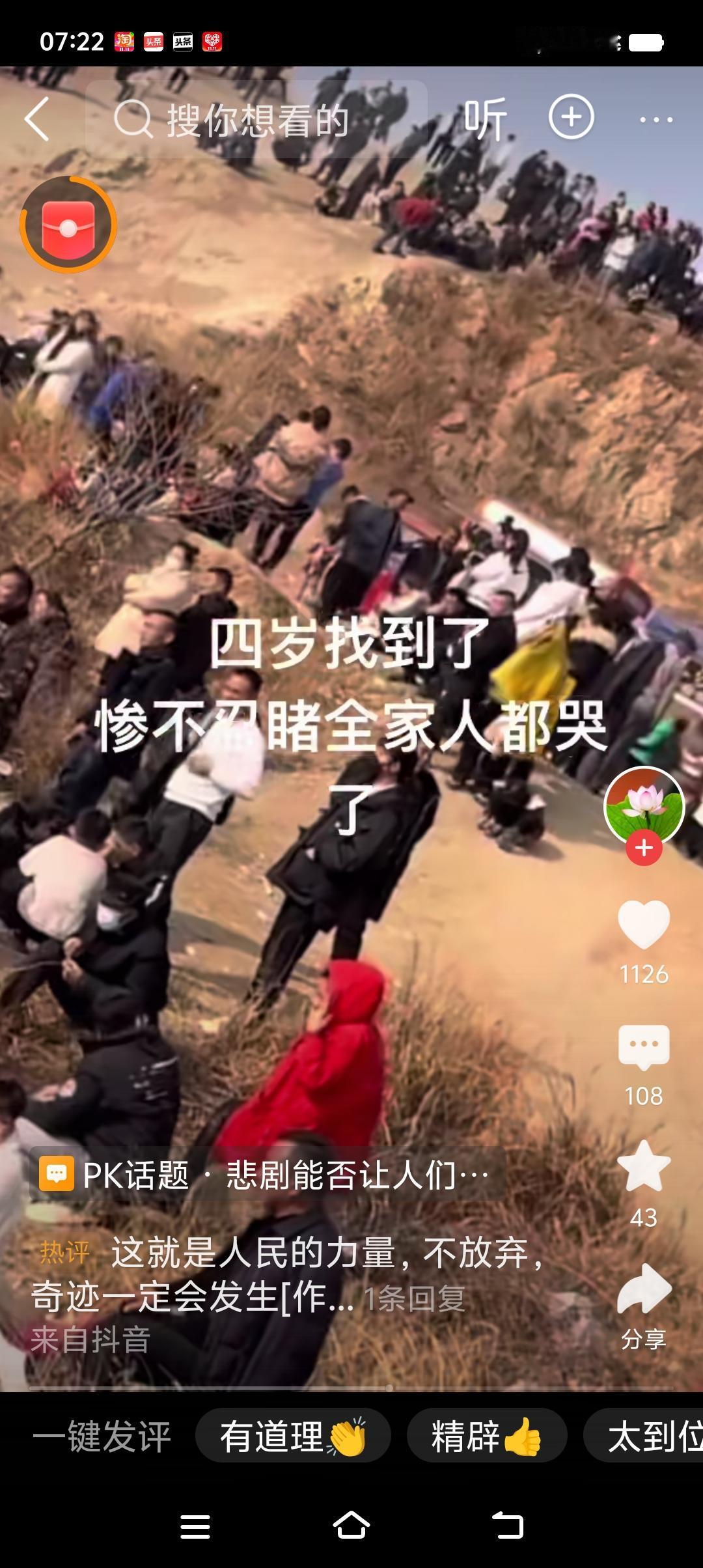 得救女孩幸运!这个家庭幸运!为大辽宁的党和政府积极救援点赞👍为所有参与救援的爱心人士点赞👍!辽宁党和政府、公安、专业救援给力!人民善良、友爱! 辽宁朝阳黑水镇4岁走失女孩被找到!一切安好! 女孩父亲视频致谢!难怪女孩口齿伶俐,一段视频看出女孩父亲表达能力真的很强! 女孩父亲向党和政府的坚强组织领导致谢!向所有参与救援的西面八方的12000个爱心人士致谢! 由此可见,大东北对孩子真是特别看重,一个孩子几乎是全家人的命啊! 女孩得救,这是拯救了老少几个家庭! 女孩父亲除了致谢还致歉,他说,因为孩子丢失给大家带来不好的影响致歉! 农村老百姓在秋收大忙季节,真是忙的马不停蹄, 三春不如一秋忙,农家院里长大的人都知道,秋天农民太忙累了,再说谁都有疏忽的时候,但是,此事确实给大家提了个醒,带孩子真的要时时处处注意安全,来不得半点疏忽! !