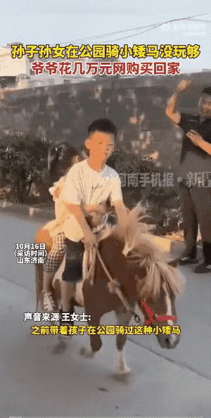 “这爷爷豪横!”山东济南,父母待小孩子去公园里骑小马,50元没骑几分钟就结束了