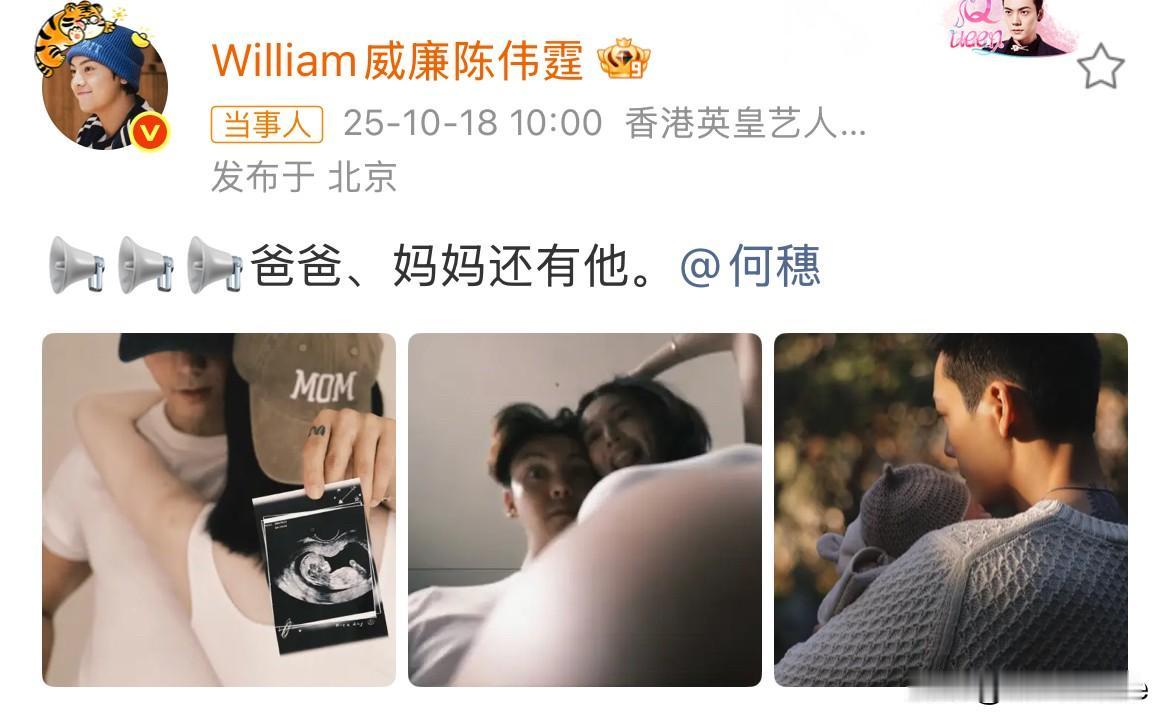 10月18日,陈伟霆何穗官宣结婚怀孕生子! 六张图一条龙,在网友对他们关系认知还停留在恋人时,他们已然成为了新手父母! 很惊喜也很意外,能感觉到这一两年陈伟霆的变化,事业心上来了,如今想来,原来是进入了人生新阶段,开始养家糊口了! 有一说一两个人很般配,都是性格很好的人,恋爱也谈了好几年,又是适婚适允年龄,能开花结果,是一件值得庆祝的事,看他们的官宣,心软软的,宝贝很小,祝福祝福!