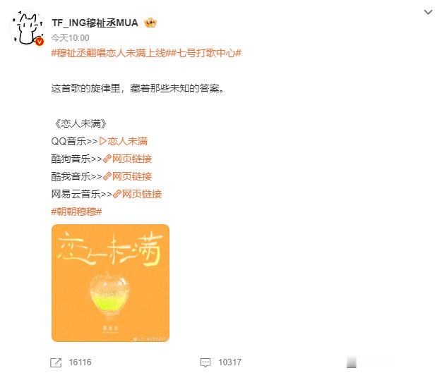 穆祉丞翻唱恋人未满上线穆祉丞翻唱《恋人未满》上线啦,一起在的歌声里解锁浪漫秋日