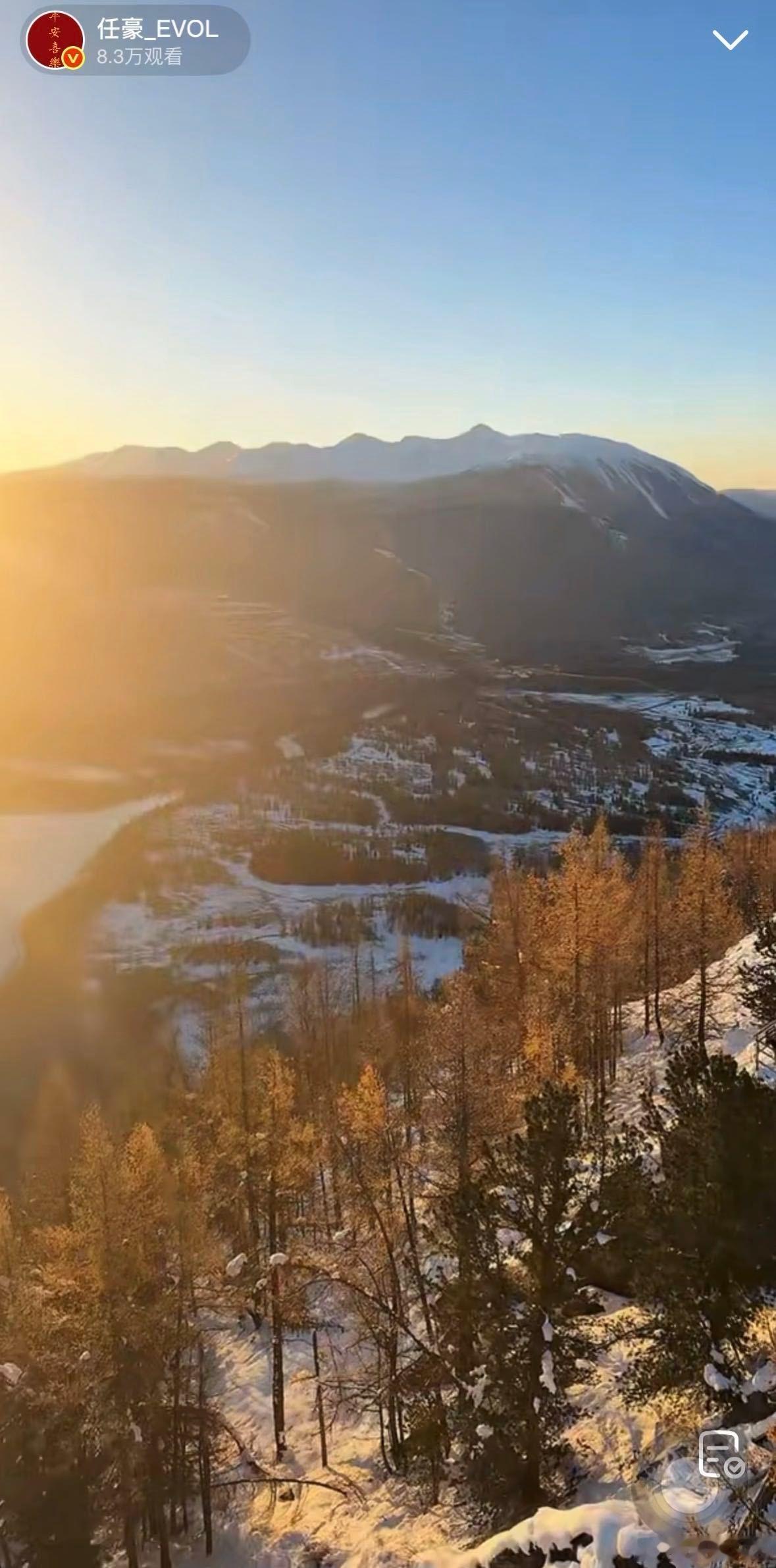 任豪日出和初雪都在新疆看上了任豪在喀纳斯开启雪景直播,漫天飞雪配上晨光太治愈了