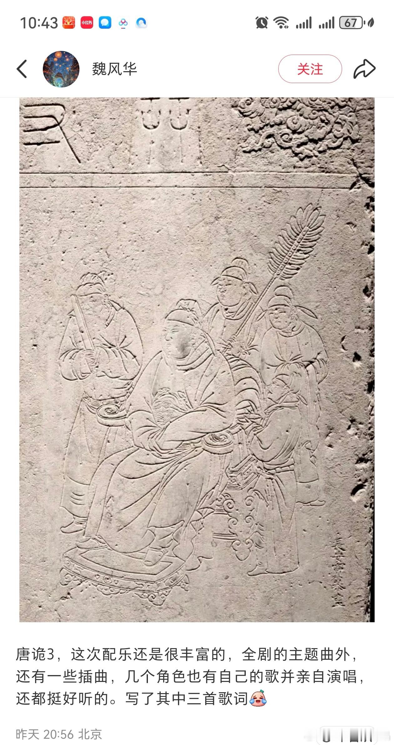 唐朝诡事录系列剧编剧魏风华老师说好几个角色都有自己的歌曲,他写了其中三首。