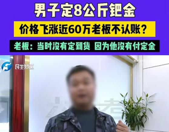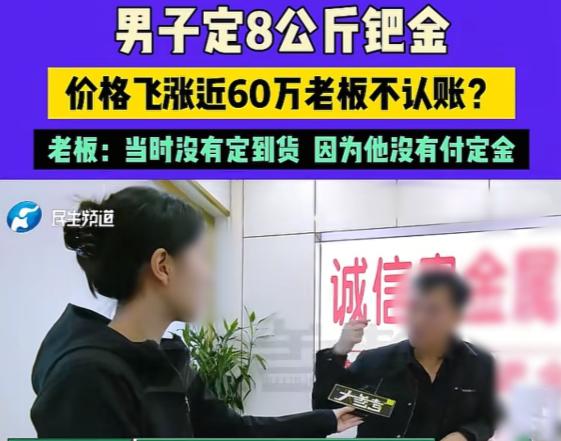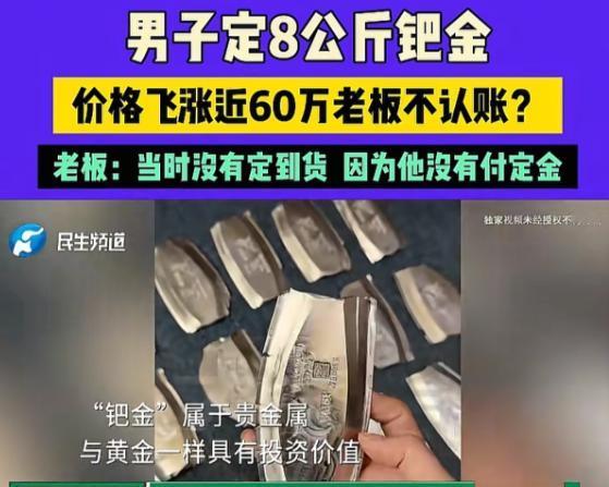 17日报道,河南男子找店家定了8公斤钯金,短短几天时间,单价就从286元每克涨到了350元每克,200多万的货物,短短几天就能挣60多万,可男子和朋友来不及高兴,店家就联系他们,说他们定金给的不够,没订到货,男子和朋友傻眼,他们明明给了店家10万元定金的,也说好货款慢慢给,经过沟通,店家愿意给男子他们2公斤钯金,可几天过去,价格一直涨,店家连这2公斤也不愿意认了,男子和朋友怒了。 黄先生和朋友杨先生通过李老板订购了8公斤钯金,单价286.5元每克,总价229.2万元,按照约定,买方应支付50%的定金,也就是114.6万元,但实际只支付了10万元,双方口头商定剩余款项在提货时付清。 订购后的第二天,钯金价格开始上涨。几天时间里,市场价从每克286元左右涨到了350元,按照这个涨幅计算,8公斤钯金的市场价值增加了约50万元。 眼看着价格一路走高,黄先生和杨先生准备按约定时间去提货,但李老板通知他们,因为定金没有按约定支付一半,他向上家订货时也没能足额支付定金,导致上家拒绝供货,无法履行交付义务。 买方认为自己已经支付了10万元定金,卖方应该按约定交货,他们找到李老板的店铺协商,店里墙上挂着“诚信贵金属”的招牌,但李老板坚持表示因为定金不足导致无法拿到货。 李老板给出了两个解决方案,第一个是退还10万元定金,再给予一定金额的补偿,第二个是等待钯金价格回落后再交货,但具体时间无法确定。双方经过几轮沟通都没谈拢。 后来在调解下,双方达成了新的协议,李老板同意在20天后向黄先生和杨先生交付2公斤钯金,价格仍按原定的每克286.5元计算,但过了约定时间,李老板又表示暂时无法交货。 钯金属于贵金属的一种,主要用于汽车尾气净化催化剂,它的价格波动受供需关系、汽车行业景气度、地缘政治等多种因素影响,短期内出现大幅波动并不罕见。 贵金属交易通常需要支付一定比例的保证金或定金,当价格大幅波动时,交易所会调整保证金比例,严重时甚至暂停开仓交易,这些措施都是为了控制市场风险,避免出现无法交割的情况。 “这李老板玩得一手好牌啊,一看价格暴涨就立马找借口不发货,这不明摆着看人下菜碟吗?要是钯金价格跌了,你看他退不退定金?估计早就催着买家提货了。” “说起来这事儿也提醒我们,做生意签合同真得看清楚是“定金”还是“订金”。一字之差差别可大了去了!如果是“定金”,卖家违约需要双倍返还,买家违约则定金不退。” “这次买家只付了10万定金,要是当初合同写清楚,卖家违约成本就更高了,不过买家也有责任,总价200多万的生意只付10万定金,比例确实太低了。” “现在贵金属价格波动这么大,这么点定金很难锁住价格风险,听说法律规定的定金上限是合同总额的20%,这单生意定金至少应该付40万左右才比较合理。” “李老板解释说是上家没收到定金才没订到货,这个理由有点站不住脚。既然收了客户的钱,就应该及时向上游支付,资金被压着说不通啊,而且后来都同意给2公斤货了,看到价格继续涨又反悔,这诚信确实有问题。” 最后解决方案倒是可以接受,20天后按原价交付2公斤钯金,至少买家没亏,不过这种价格剧烈波动的商品交易,最好还是找大型正规平台,小店抗风险能力差,容易出纠纷。 大家觉得这种因为价格暴涨暴跌导致的交易纠纷,责任到底该怎么划分才公平?如果你遇到类似情况,是愿意接受赔偿还是坚持要货? 信源:民生频道