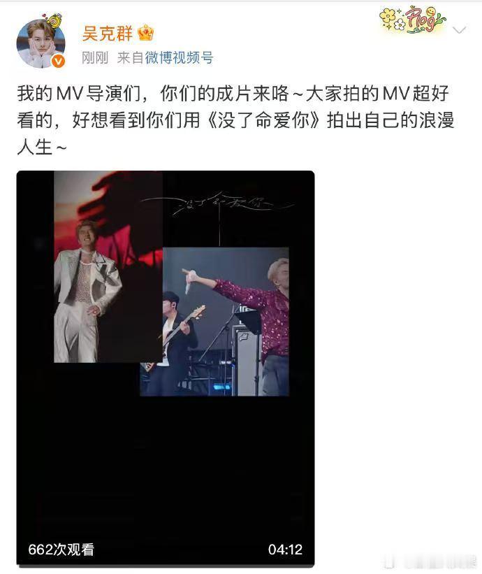 真当上吴克群的MV导演了 吴克群新歌MV上线,粉丝拍摄的画面全被采用,ID还露脸,花瓣雨浪漫到不行,这波操作简直是把粉丝宠上天! ​​​