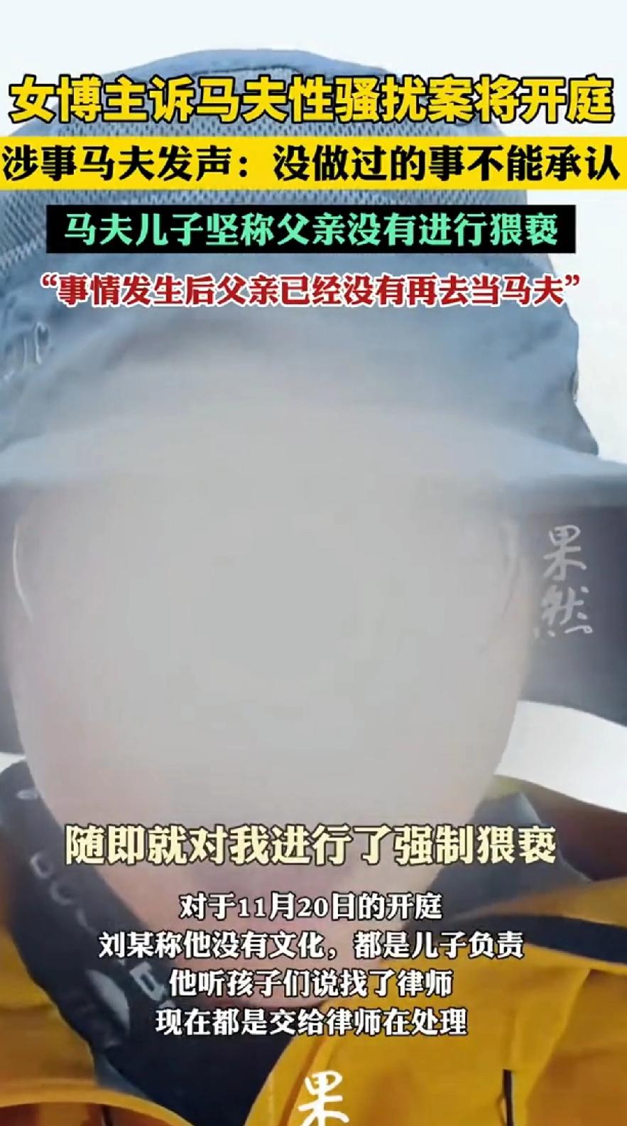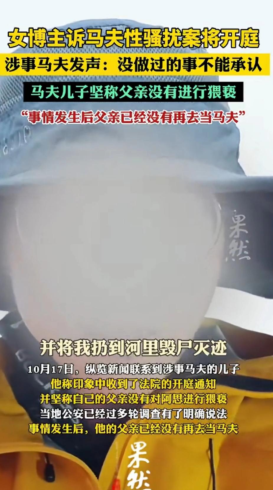 女博主诉马夫性骚扰案将开庭,涉事马夫发声:没做过的事情不能承认。 这事儿从20