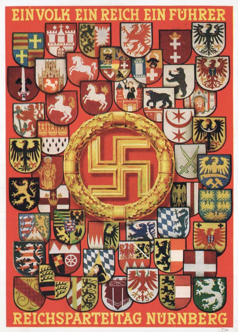 “一个民族,一个帝国,一个元首”——1938年纽伦堡纳粹党代会明信片。
