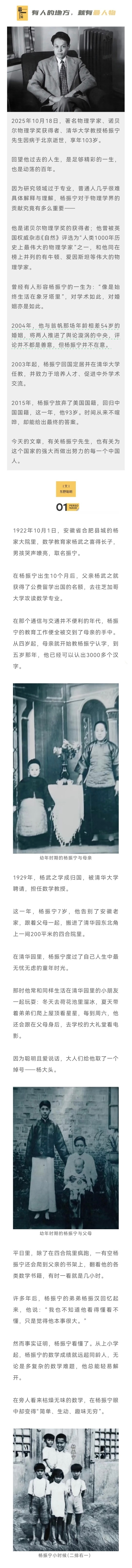 2025年10月18日,杨振宁先生因病于北京逝世,享年103岁。杨振宁逝世