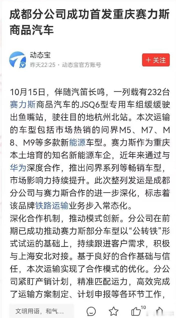 以后各家汽车铁路运输应该是常态了,效率高,雨雪天气也不会误事,不过还是比海运贵不少。其实赛力斯可以借助位置优势,走长江水运,省力省钱。