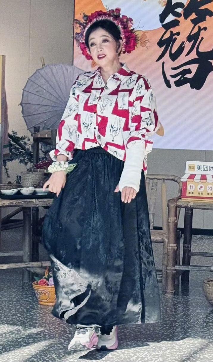 刘晓庆,一路繁花2,簪花造型展示,尽显非遗传承之美…… 很多人说刘晓庆的这个造型不好看,我怎么觉得这么好看呢!说不好看的,到底哪里不好看了? 原来,说不好看的是说衬衫不好看。当我再认真看一看时,刘晓庆穿的这件衬衫,确实不咋样,好像配不上簪花,所以整体看起来有点不太搭。说实话,黑色半身裙倒是很好看,与簪花很配,美美美! 呵呵,说来说去。其实,刘晓庆的这个造型,亮点在簪花之上,并不是衣服。 所以,我们能get到簪花的非遗传承之美就OK了。