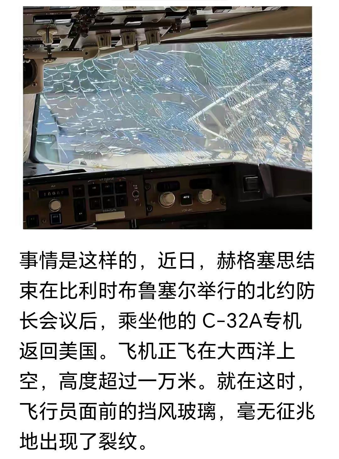 劲爆!美国防长赫格塞思差点嘎了。最近一条新闻太炸裂,这少尉大兄弟在布鲁塞尔参加完北约会议后乘专机回美国的途中,在大西洋上空飞机风挡破裂。情况和川航8633类似,不同的是8633破了一个大洞,它这个只是裂了。但是这种事会发展成什么结果,谁知道呢? 官方回复是飞机老旧,毕竟是1998年的飞机了。本来早就说要换,这不就是没钱嘛![偷笑] 但是……美国官方的话你能信几分?想象一下前不久这大兄弟在800将军面前趾高气扬的样子,再联想一下税宗第一任中美关系紧张的时候,美军司令亲自打电话过来承诺不会听从税宗的胡作非为。 美军会不会把这个满嘴跑火车的马屁精给做掉?你猜?[偷笑] 点右上角关注我,我们一起去看这个魔幻的世界