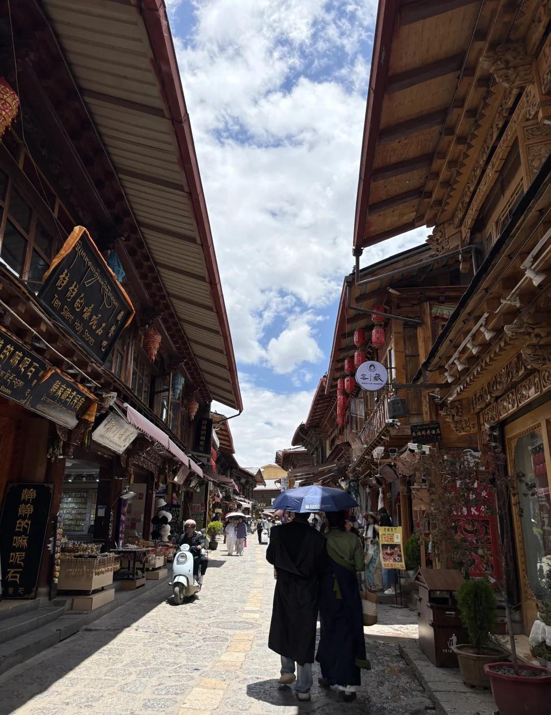 没有人能不爱香格里拉 云南行程里,本来计划香格里拉2-3天,结果一呆就是6天,说是离天堂最近的地方 ,可能是真的,感觉灵魂被清洗一次。 自驾从丽江出发,走国道到香格里拉,一路上都是风景,雄壮的金沙江就在脚下奔腾蜿蜒,心也跟着开阔起来。 独克宗古城,夜幕降临的时候,月光广场的年轻人会载歌载舞,我就旁边看着,都感觉到很感动,心里在想,这才是人类该有的生活啊,人不应该像机器人一样两点一线,回家就是玩手机,在做牛马的日子里一点点麻木,失去对生活的热爱。 香格里拉的风景,也是绝美的,我还没去过新疆和西藏,这里可以说是我见过最美的地方了,雪山🏔️,群山,草甸,湖泊,溪流,遍地牛马。徒步者的天堂,感觉呆多久都不会腻。不管欣赏风景,还是拍照出片,都可以说是完美。 至于美食,肉食者有福了,牦牛肉火锅天天吃,一家三口也才一百出头一顿,牦牛肉包子,牦牛肉馅饼,牦牛肉披萨,酥油茶,奶酪,牦牛奶,还有各种小炒可以吃,民风淳朴,物美价廉。 香格里拉,你是心中的日月 ,没有人能不爱吧