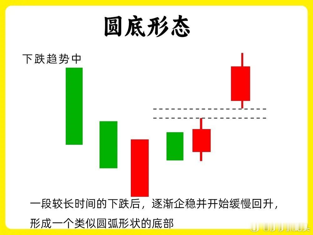 下跌末期空方力量耗尽,股价走出类似“半圆”的筑底走势,形态温和无尖角;成交量从下跌时的放量,逐渐转为缩量,筑底后期又重新放量,是底部逐步夯实的信号。