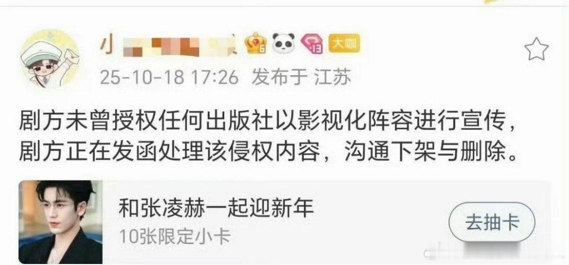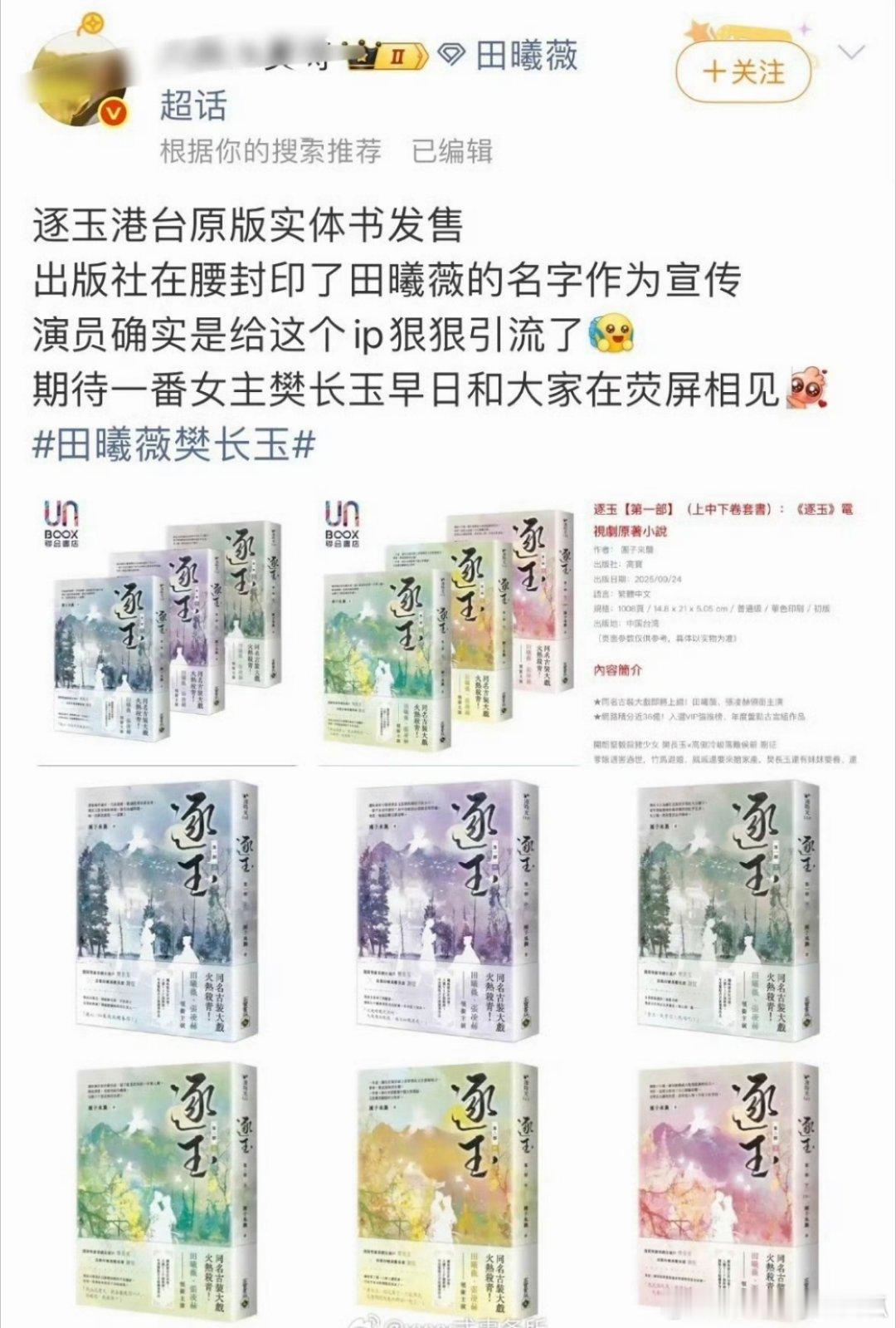 《逐玉》实体小说上写了剧版男女主张凌赫、田曦薇的名字,小核桃在维⭕中,要求下架处理。