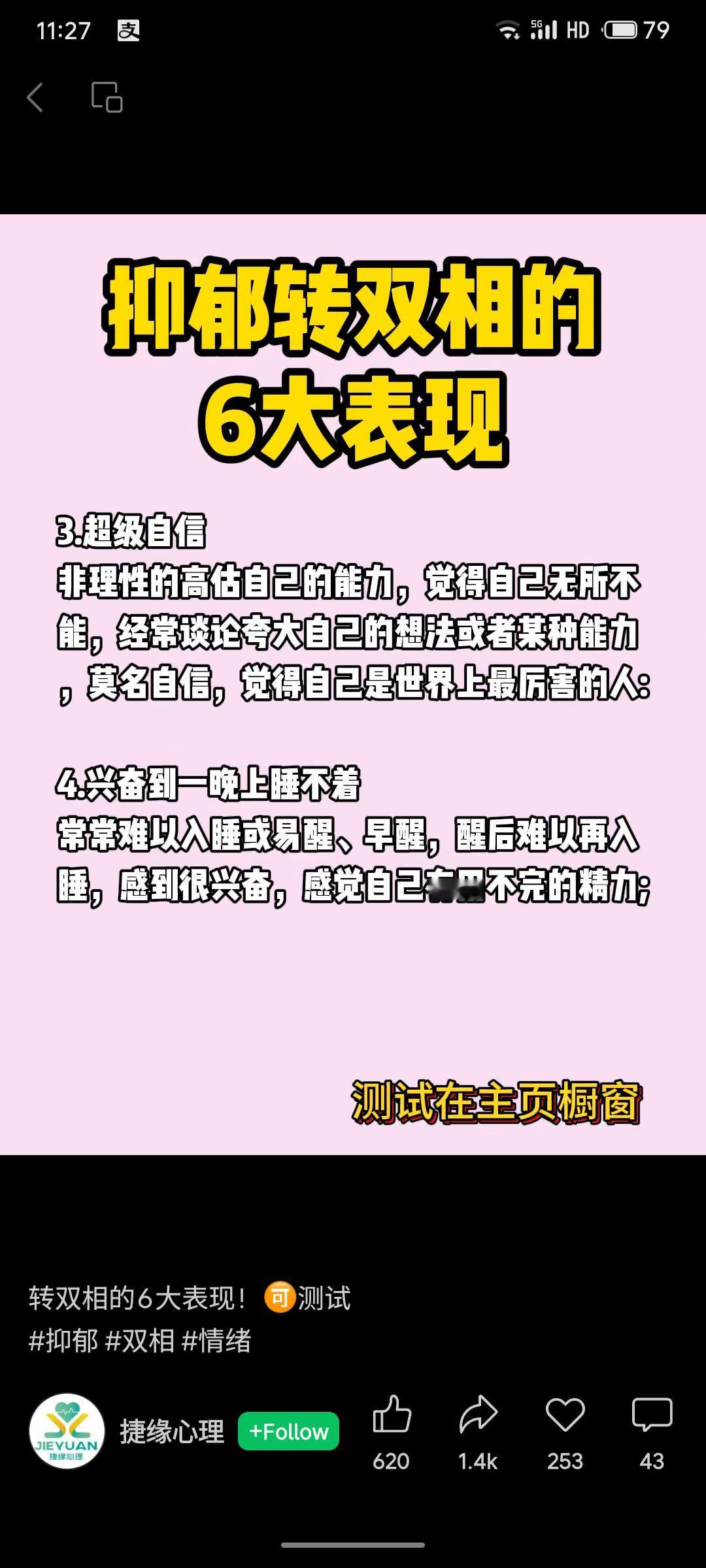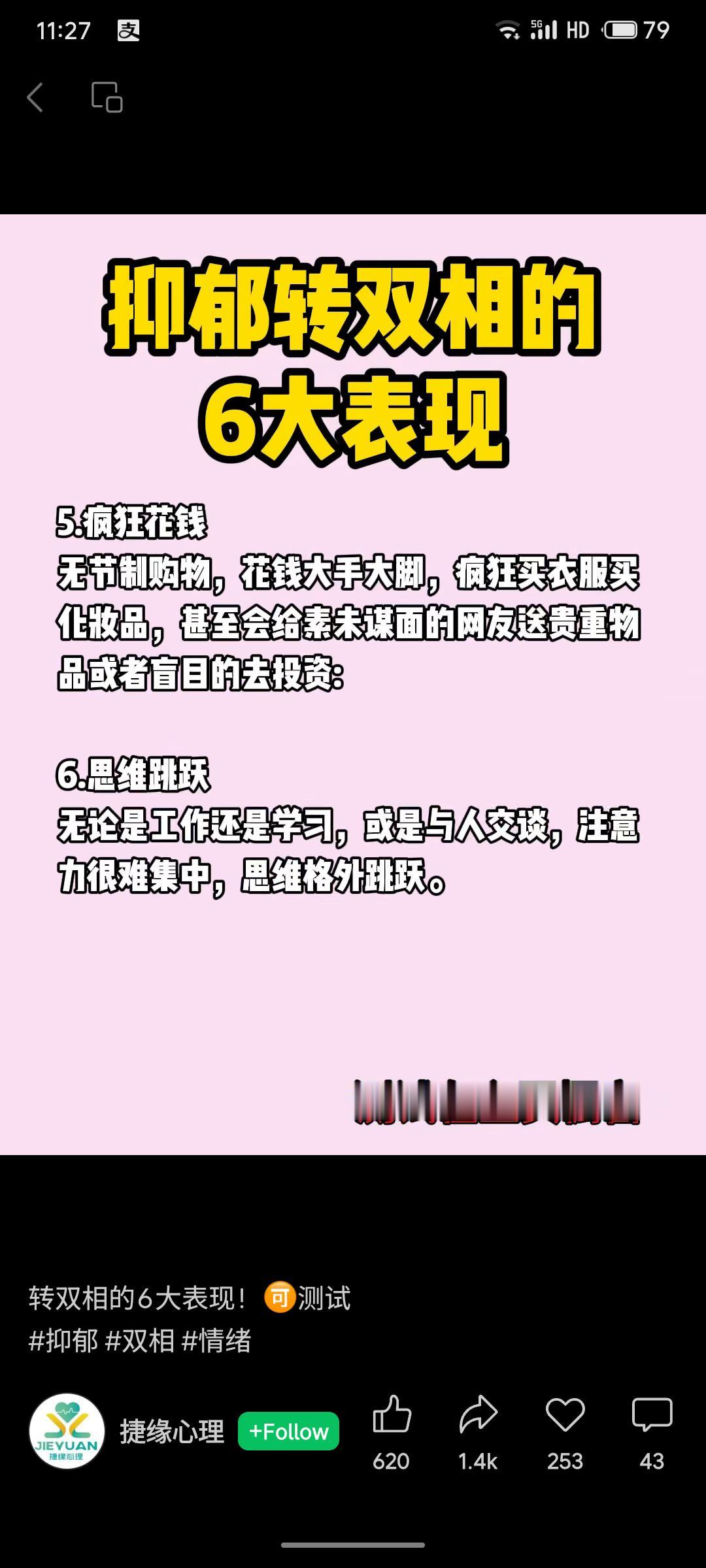 抑郁转双相可能有六大表现:话多兴奋、暴躁易怒;过度自信、精力旺盛失眠;无节制消费、思维跳跃难以集中。这些是情绪状态异常的警示信号。