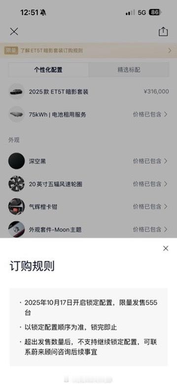 又想骗我买ET5T。这次除了官方磨砂灰,还标配了很多要花钱的配置,20寸轮毂,moon哑光套件,冠军版同款的升级避震。