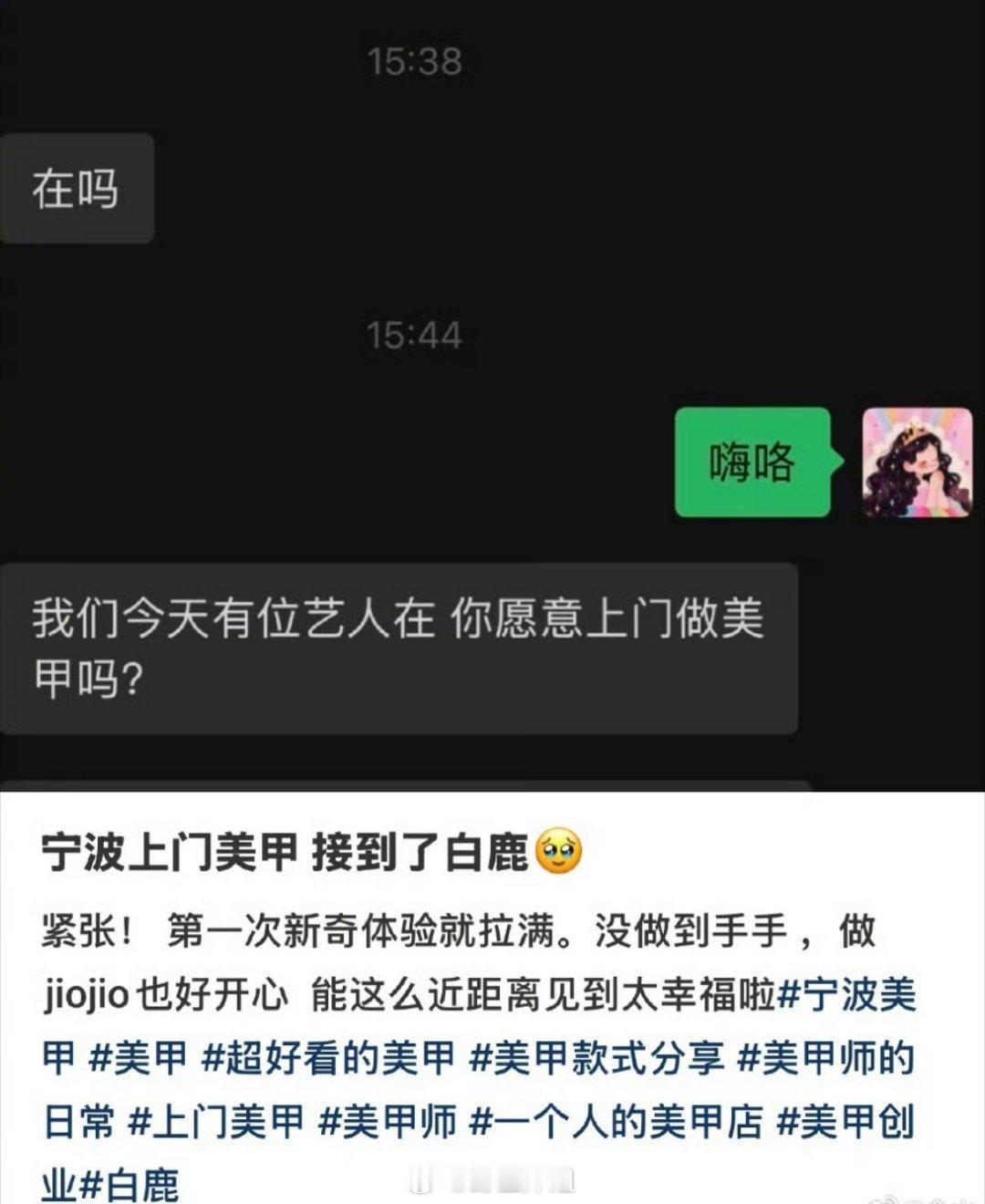 哇哦,有美甲店主接到了上门去帮白鹿做美甲的单,直接近距离看到女明星,还有钱赚,真