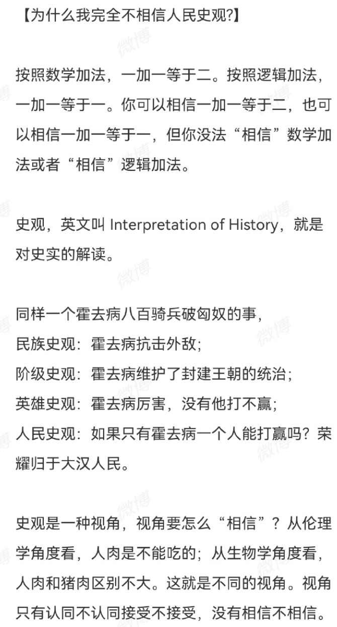 可只有顶流人才,事情就能解决嘛?咱们是英雄史观浸润的国家,讲个评书都是军师奇谋加关张之勇,就能百战百胜,跟普通小兵没啥关系。近代好歹有个人民史观,结果一票既得利益者,又因为自己的小九九,坚决不想认。说来说去,核心都是:我挣了点钱,所以我不信人民史观,信了,我的能力就不值钱了。