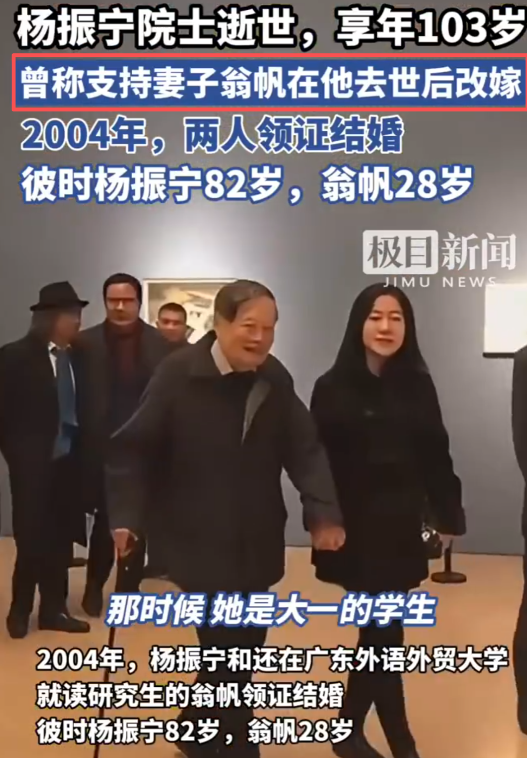 2017年前后,根据媒体报道,翁帆拿到一套别墅,但这别墅是清华给杨振宁养老用的,只有使用权,没有产权。这国有资产不能私相授受,杨老走了这房子要不要收回?杨老还说,我走后翁帆还有几十年,希望他再嫁,找个人照顾她。……可翁帆都快五十了,老先生指的这个出路是不是有点……