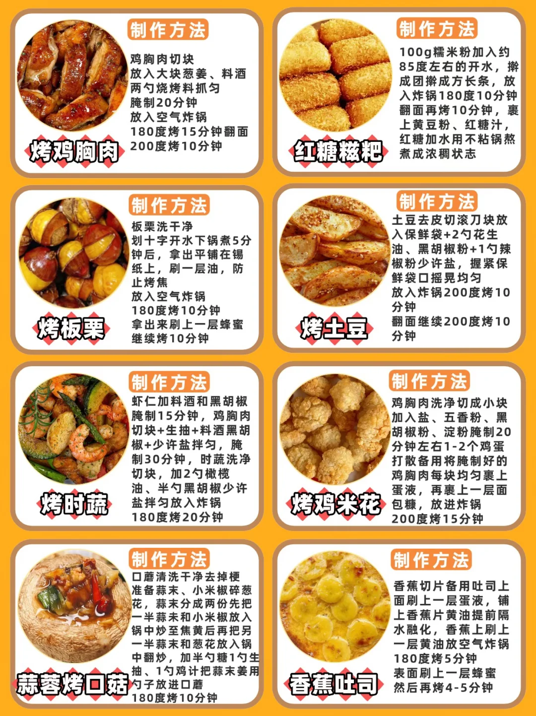 自从买了空气炸锅后解锁了好多宅家美食,新手宝宝一起学起来吧,手把手教你制作美味又健康的低卡少油美食,简单又美味,每一道都巨巨巨好吃,学会了每周做菜不重样!新手宝宝可以参考空气炸锅时间表烹饪,一起解锁更多美食吧[派对R][派对R]