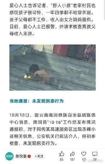 野人小孩爸爸回应孩子不穿衣服最近,网络上一个“野人小孩”引发了大家的关注,这