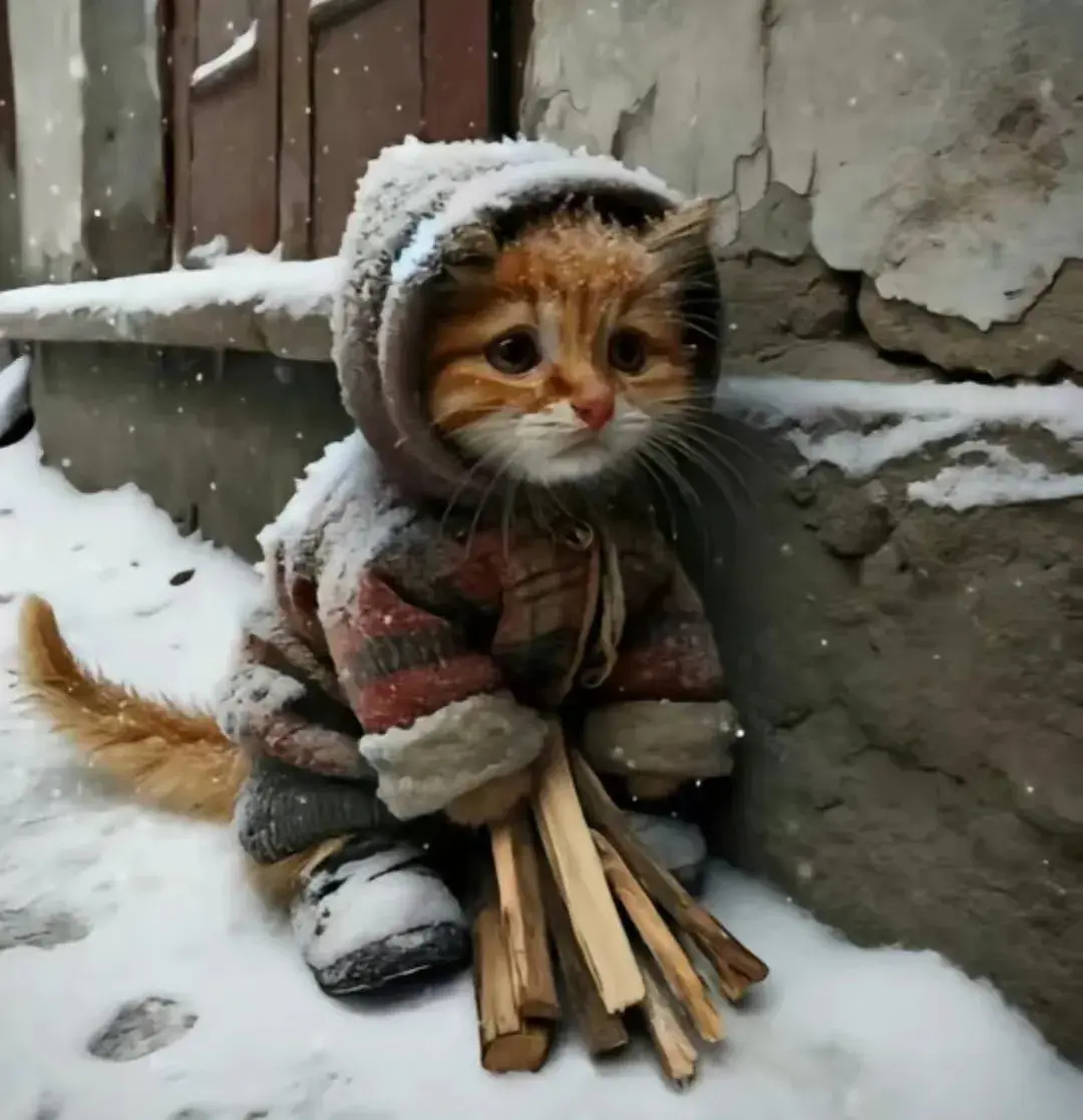 雨天,穿雨衣的猫咪好可爱喜欢在雨中玩,叫回家还生气😠