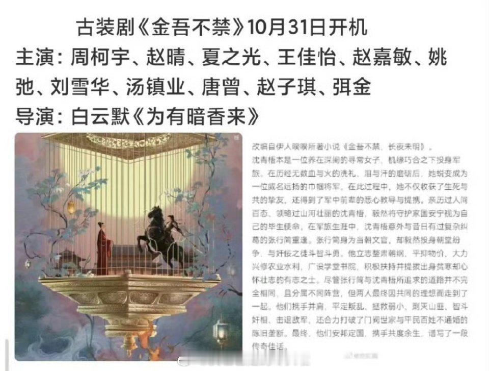 《金吾不禁》明天官宣,周柯宇,赵晴,夏之光