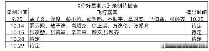 《你好星期六》最新录制待播表