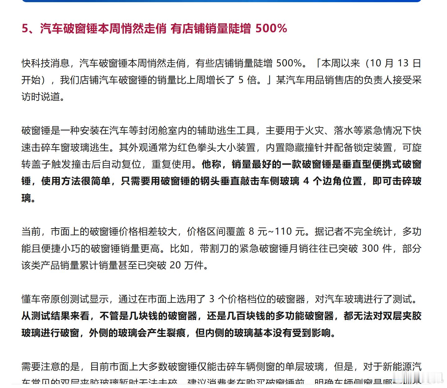 不过下面说了,双层玻璃好像很多都不行,有知道的吗?有商家破窗锤日销量增长近70倍破窗器面对双层夹胶玻璃或无能为力