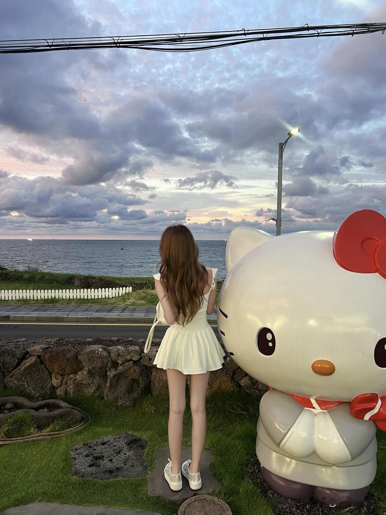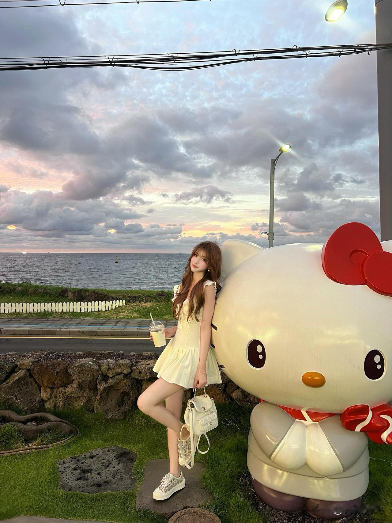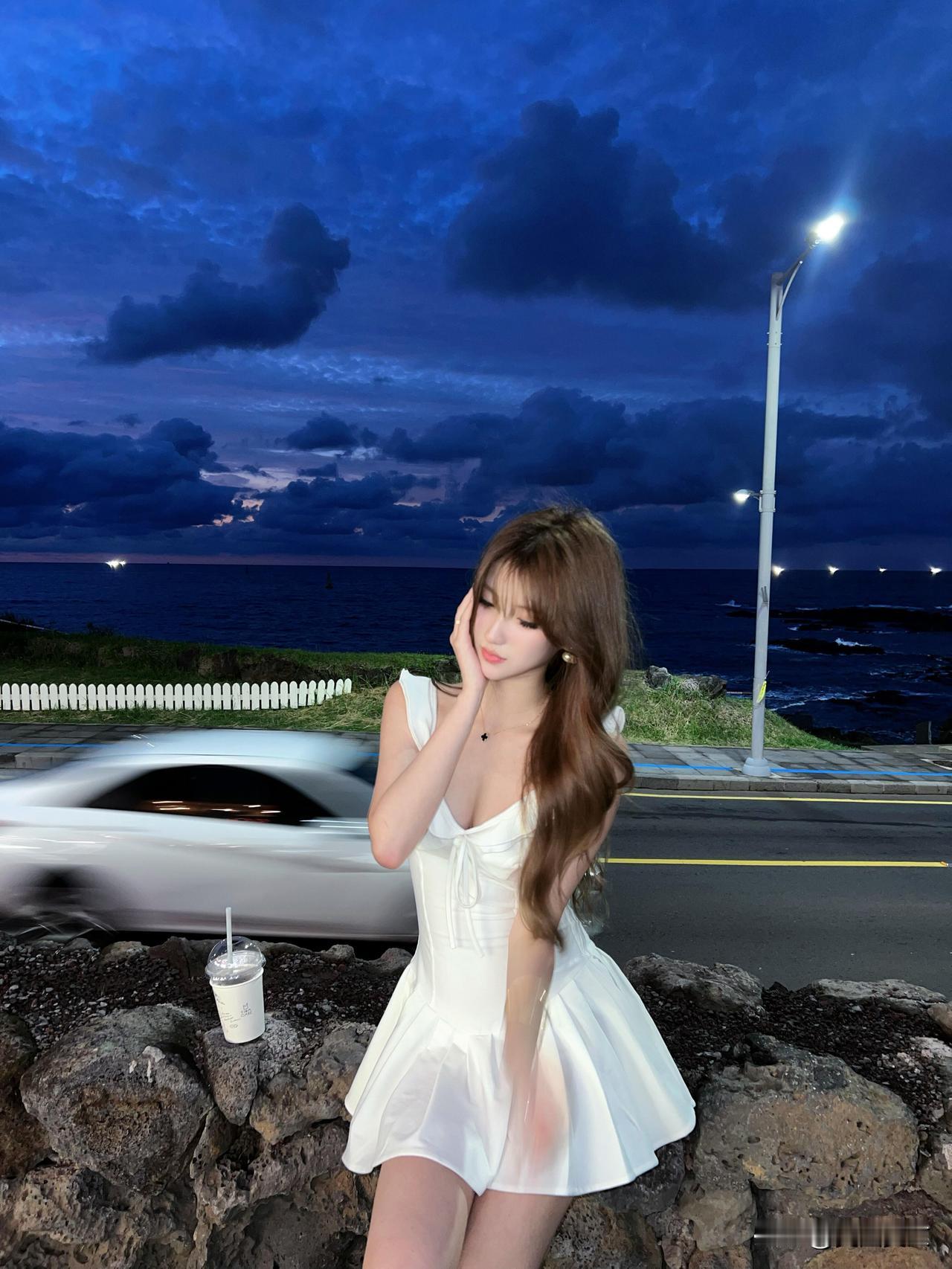 夏日黄昏,少女漫步在街角,手持奶茶,享受宁静时光。