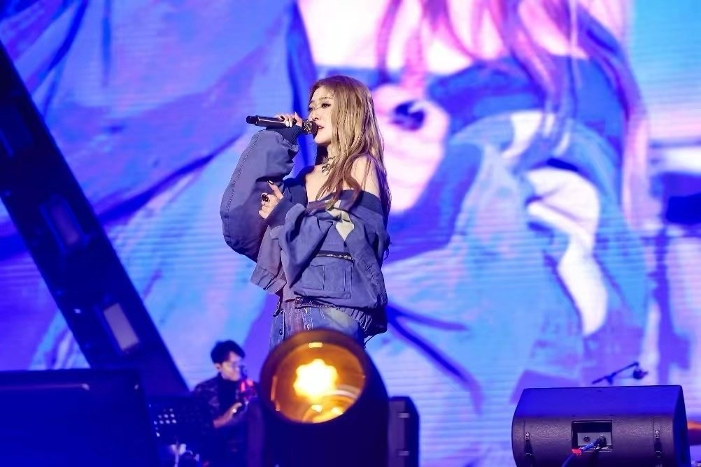 薛凯琪被冻出音效 薛凯琪太拼了!低温夜穿牛仔抹胸登台,talk时冻出“唔”的音效,还笑称“薛凯琪觉得她可以”。即便鼻尖通红、手发抖,歌声仍稳如CD,互动超热情,敬业又有实力!