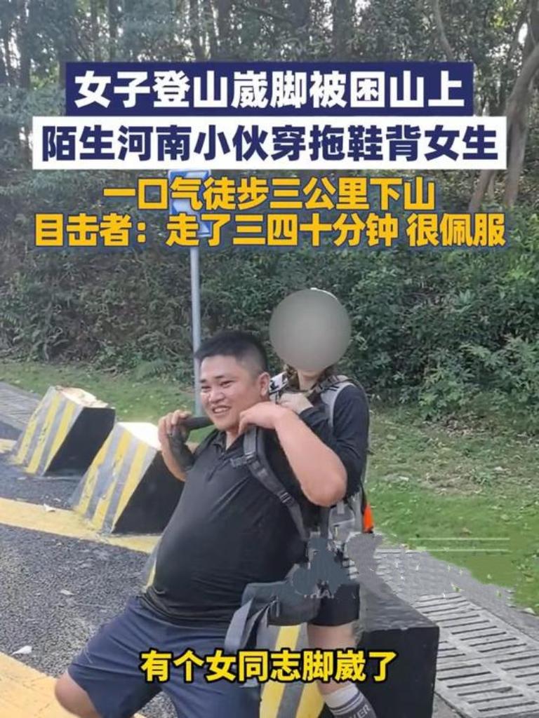 女子登山时不慎崴脚被困半山,情况危急!幸遇热心小伙,毫不犹豫背起她徒步下山,暖心