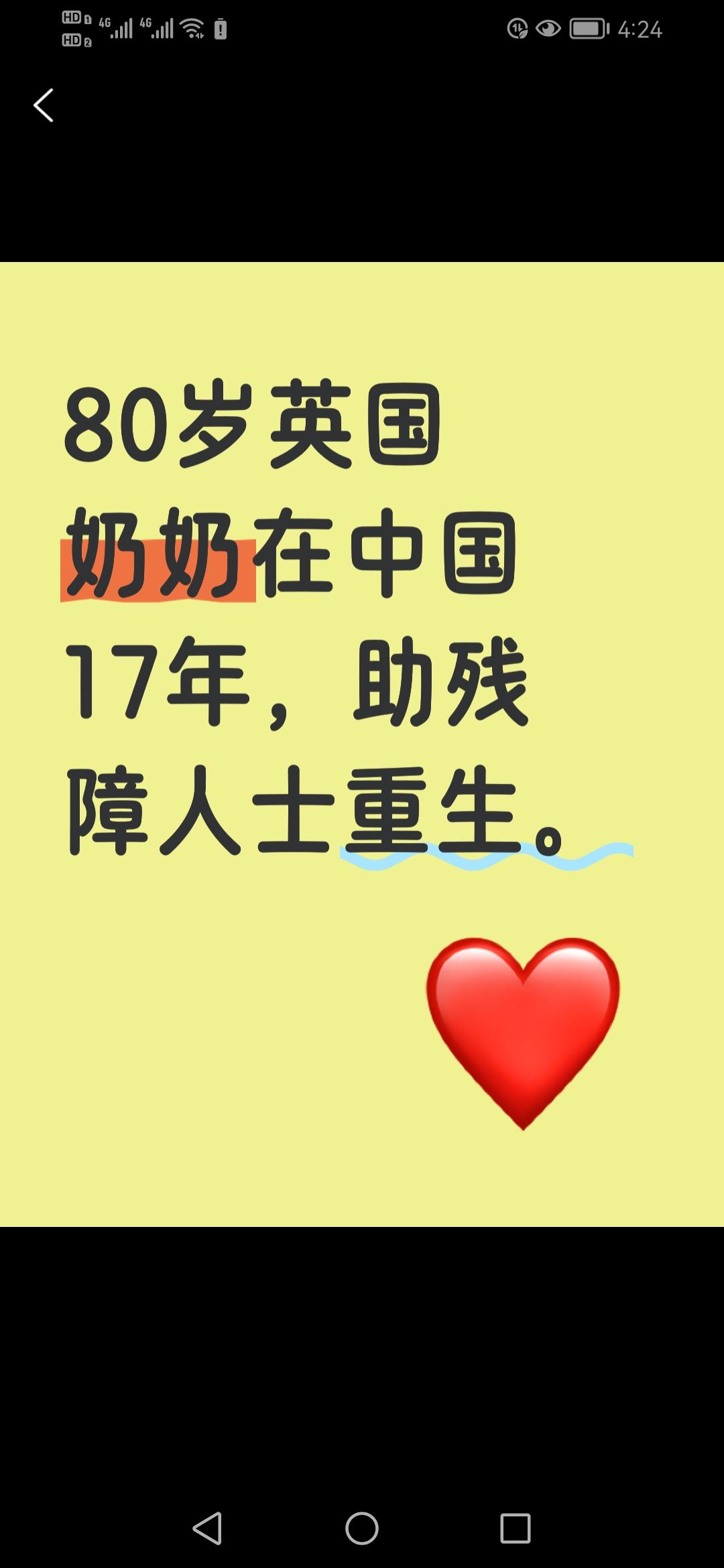 80岁英国奶奶瑞秋,为何在中国一待就是17年,还成了众多残障人士的“再生父母”? 瑞秋奶奶,这位来自英国的80岁老人,已经在四川成都度过了17个春秋。早在1989年,她就以志愿者的身份踏上青藏高原,为当地提供医疗服务。而2008年汶川大地震后,她毅然决定留在中国,用她的行动温暖着这片土地。在成都,她开了一家小杂货铺,这里成了许多人的“重生之地”。40岁的陈鲁宾因残疾而迷茫,瑞秋鼓励他学习制作皮夹,让他重新找回了生活的信心;47岁的杨贻源因烧伤失去积蓄,瑞秋不仅购买了他的作品,还亲自教他皮雕手艺,助他走出困境。瑞秋奶奶的行为,不仅帮助了许多人重新找到了生活的方向,更让我们看到了人间大爱的力量。 瑞秋奶奶虽已返回英国,但她的爱仍在延续,她的小店仍在志愿者的帮助下继续运营。这份跨越国界的爱,值得我们每一个人去传递和珍惜。快来评论区分享你的感受吧!海归老人