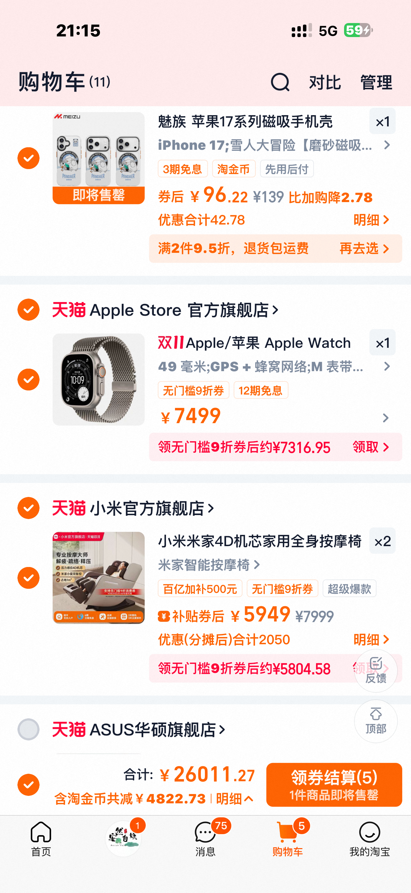 双十一没便宜双十一前加入购物车的产品,每一款都降价了!!今晚再整理整理,准备下