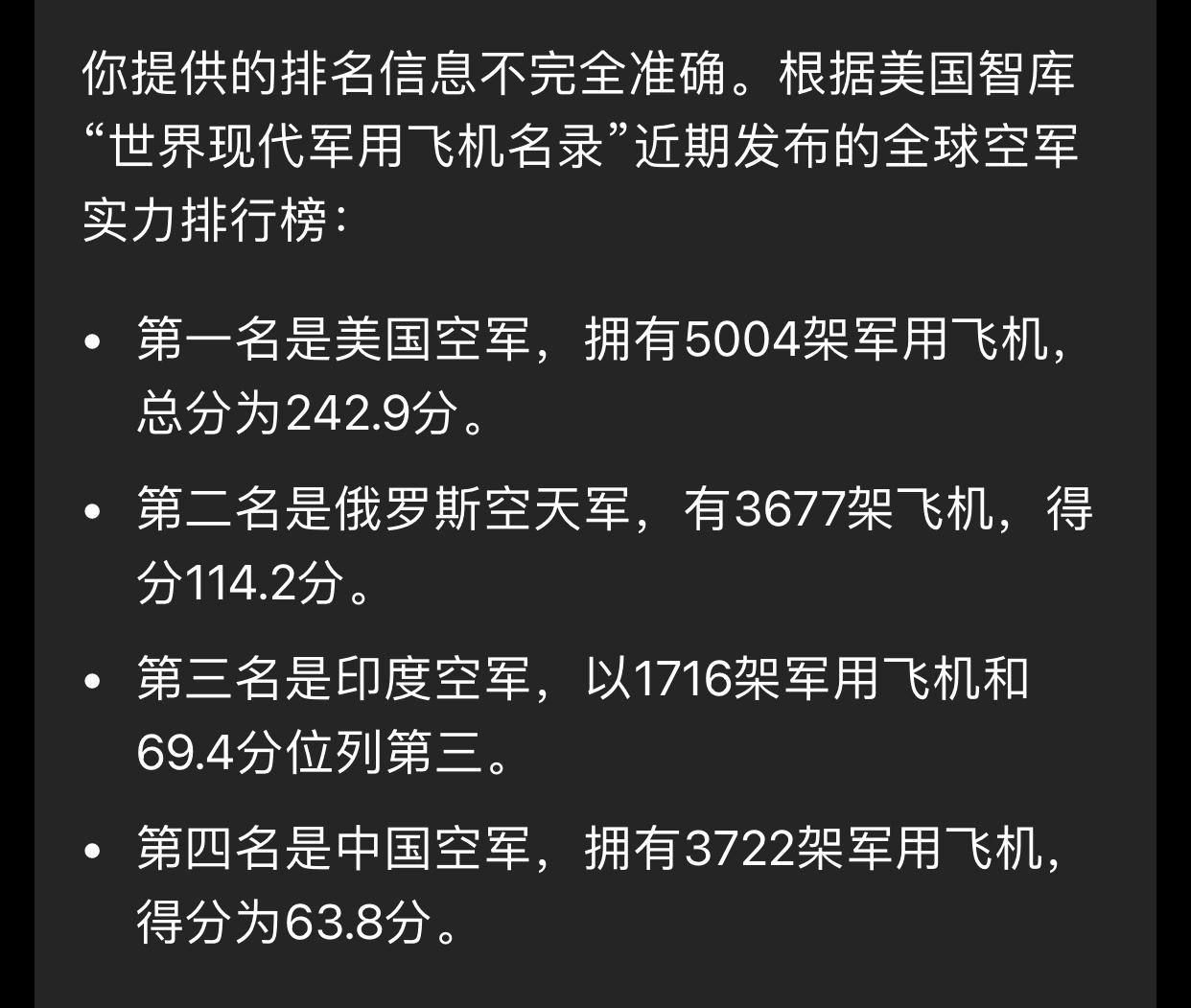 这两天,印度阿三哥喜从天降![偷笑] 做梦都想不到自己的空军能被吹上天去! 8月17号,大漂亮智库WDMMA发布了最新世界空军排名榜。阿美莉卡和北极熊大鹅分别排在排行榜的前两位,阿三哥排在第三位,大东东排在阿三哥的后面,位列第四。[大笑] 根据WDMMA的数据,尽管大东东的军用飞机总数是阿三哥的两倍多,且空军规模也是阿三哥的两倍多,但砖家们坚持认定:阿三哥仍然保持着对大东东的优势。[抠鼻] 另外,砖家们表示:阿三哥空军有一项优势无人能敌,他们拥有来自小法、大鹅、大漂亮的战斗机和阿三哥自产战斗机的健康组合。[黑线] 砖家就是砖家!👍 大漂亮的砖家是砖家中的砖家!👍 印巴战机升级 印度空军矛盾 印度王牌飞行员 印度空军司令 南亚空军 三哥空军