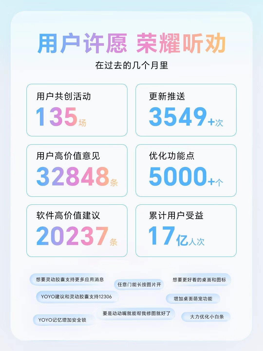 前几天发布会的时候也提到荣耀“许愿池”,主打一个听劝。软硬件层面,荣耀都在更加努力的倾听用户的声音。