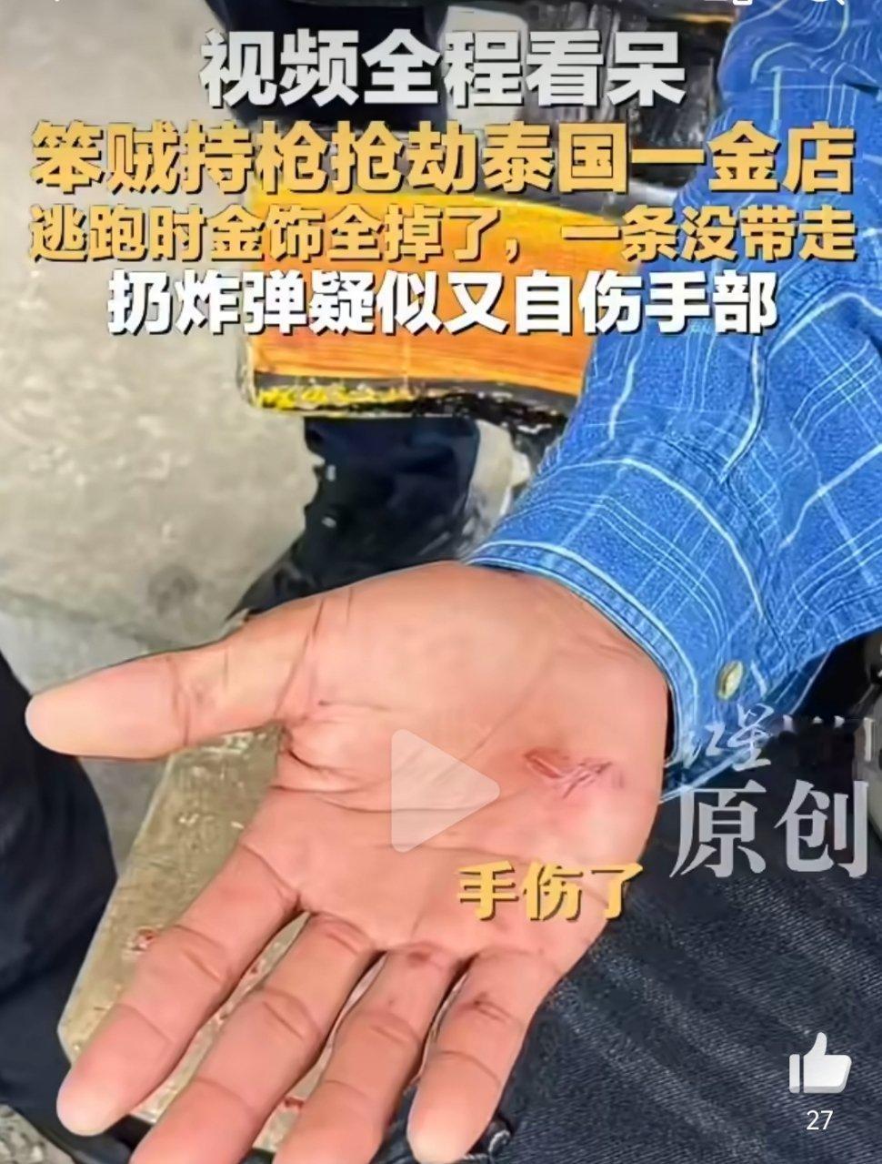 泰国劫匪抢劫金店扔炸弹时炸伤自己泰国劫匪炸伤自己又空手而归的抢劫案,好笑之余更引