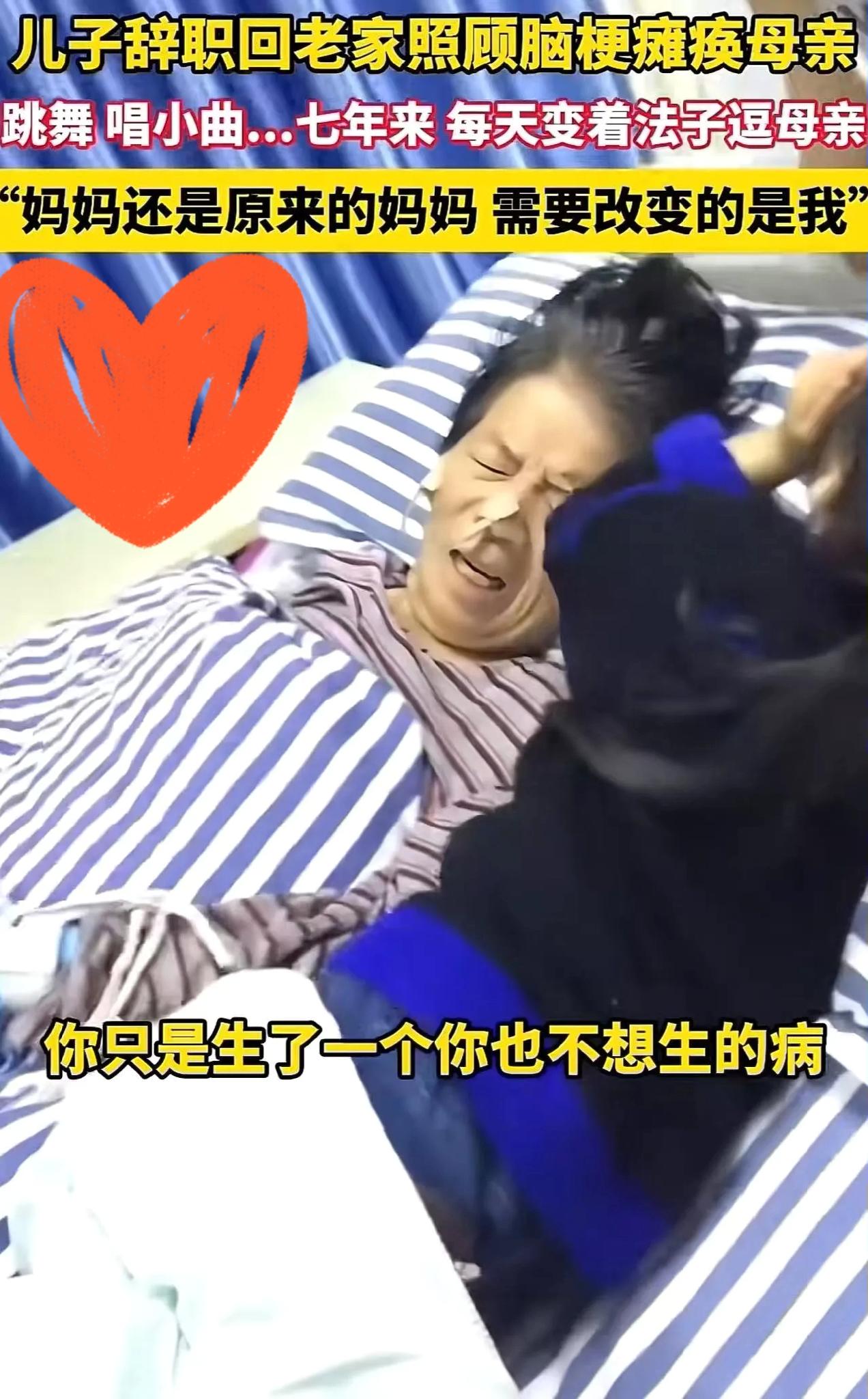 浙江儿子火了!一句话戳中几百万人。 六年前妈突发脑梗不能自理。他立马辞了铁饭