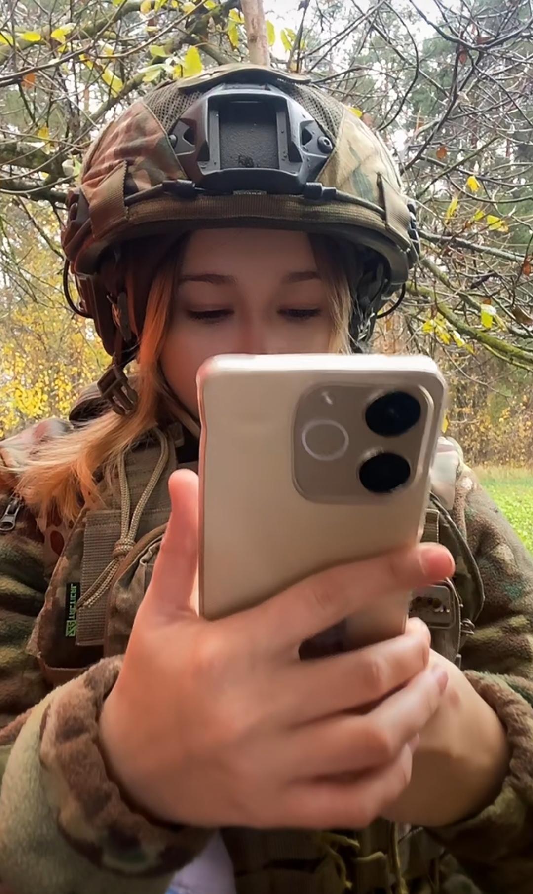 刚刚刷到了一个乌克兰女兵的视频,她拿着两个手机,在野外开直播! 背后是一片密林,她穿戴整齐,像是在前线似的。 虽然不会中文,但是她用手机上的翻译软件,与直播间的中国网友进行沟通交流。 不少网友还在给她刷礼物。 她时不时用手机给大家展示一下在中国拍到的视频,口口声声称赞我们国家。 还别说,这颜值确实很吸引人。 估计不是在真前线,否则拿俩手机在线直播,太容易被无人机锁定了。