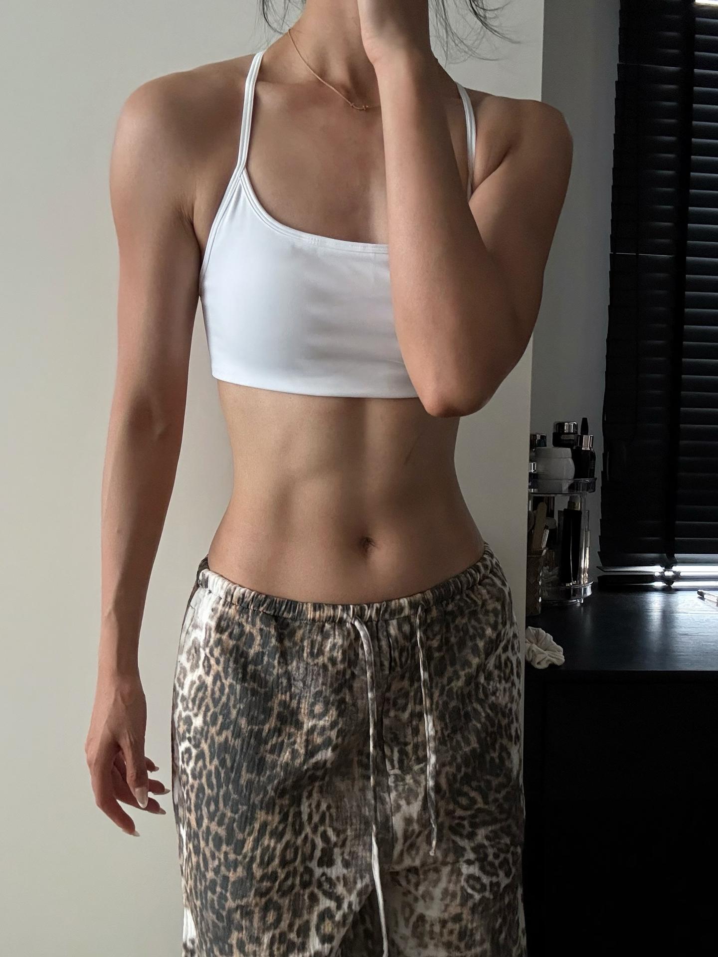 没有训练痕迹 宽肩窄腰 居家锻炼 薄肌 健身女孩