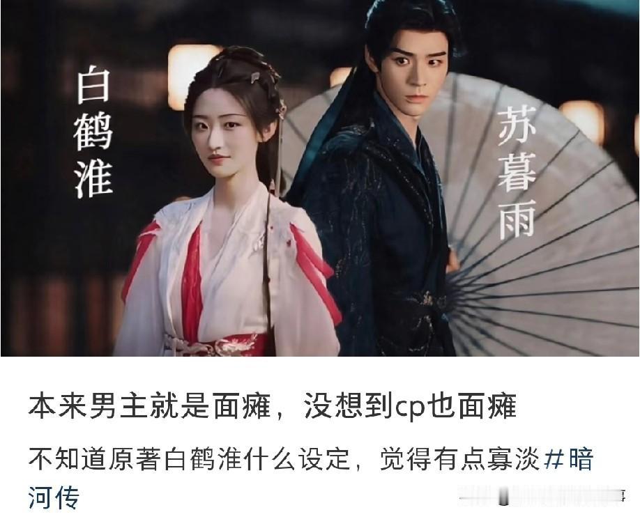 的特效是真的能夸,动漫化风格很对味,布景和服饰也肉眼可见地用心。但懂的都懂,当一部剧只能靠服化道和特效撑场面,没人夸剧情的时候,基本就等于“完蛋”预警了。 尤其男女主的状态太出戏,龚俊饰演的男主本就有“面瘫”标签,这次在剧里眼神依旧呆滞,没什么戏味;杨雨潼饰演的女主也没好到哪去,肢体语言尴尬得让人出戏,不少人还在问“这女的好眼熟,演过啥呀?没印象了”。两人同框直接被吐槽是“面瘫CP”,对比动漫里灵动活泼的感觉,剧版角色显得又空洞又寡淡。 男主除了《山河令》外,后续作品确实没什么大动静,不知道是不是角色限制;女主的辨识度也有待提升。至于原著里的白鹤淮,目前还没看出太多亮点,只觉得人设有点平。 大家看《暗河传》了吗?是觉得特效够顶能忽略剧情和演技,还是跟我一样被“面瘫CP”劝退了?来评论区聊聊~ 剧版暗河传