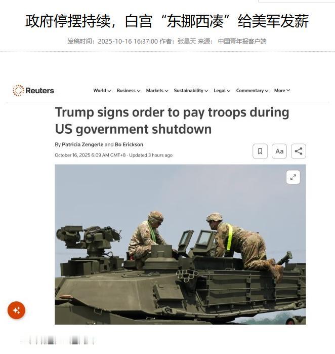 美国政府关门进入第三周,到处都是叫苦连天。面对一片惨象,美国总统老特签署命令,让美国战争部利用一切可用的资金支付军人薪水。此前,老特曾承诺寻找资金支付美军官兵薪水。不过,美国军方是吞金巨兽,就老特现在能找到的钱,都不够美军塞牙缝的。 政府为啥关门是因为共和党和民主党在预算上吵得不可开交,一方要按自己的想法给医保这些福利掏钱,另一方死活不同意,结果上一财年结束了新的拨款法案也没通过,从10月1号起政府就停摆了,这一停就是快二十天。 其实这在美国早不是新鲜事,20世纪70年代以来都闹了20多次了,老特自己第一个任期就搞出过35天的最长停摆纪录,当时是为了修美墨边境墙,现在换了医保议题,套路还是一样——只要能恶心到对手,国家停摆也无所谓。 最坑的是130万现役军人,明明被划成“必要岗位”,枪得扛、岗得站,连海外基地的巡逻都没停过,工资却硬生生断了,这可是美国现代史上头一回这么大规模欠薪。 别以为美军工资是笔小钱,普通士兵光基本工资就有三千多美元,再算上住房补贴、伙食补贴这些附加项,一个月到手少说六千美元,130万人光薪资就得78亿美元一个月,这还没算随军家属的医疗补助、士兵的教育基金预支。 之前2020年驻韩美军就差点让9000名韩籍雇员无薪休假,那些人还只是辅助人员,更别说这130万核心战力的开销了,老特凑的80亿刚够贴补薪资缺口,还得抠抠搜搜挤掉不少福利。 美军这“吞金巨兽”的胃口可不止于薪资,就说装备维护,11艘核动力航母每艘每月维护费就得5000万美元,光这一项每月就砸进去5.5亿;驻韩美军那2.85万人的基地,水电、安保、后勤补给一年就得30亿,摊到每个月又是2.5亿。 更别提训练开销了,F-35战机飞一小时成本就高达3.6万美元,一个飞行中队每月至少飞200小时,这又是720万。 这些杂七杂八加起来,每月光非薪资开销就超过30亿,80亿除去薪资剩下的这点钱,连航母维护和战机训练都不够分,更别说武器采购、基地扩建这些大头了。 老特拿战争部的钱救急,本质就是拆东墙补西墙,2013年政府停摆时,奥巴马也签过类似的军方支薪法案,结果挪用了装备维护资金,导致第二年美军F-16战机出勤率直接跌到58%,好多飞机趴窝没法执行任务。 这次要是动了采购经费,新批次的导弹、士兵的防弹头盔都得延期交付,之前就有报道说美军库存弹药只够支撑高强度作战30天,再这么挪用下去,所谓的“全球战力”纯属自欺欺人。更麻烦的是法律风险,国会本来就吵得不可开交,老特挪用经费等于给民主党送了新靶子,参议院立马就能发起追责听证,反而把停摆的窟窿越撕越大。 两党这波操作早就把民众折腾得没了耐心,《纽约时报》民调显示,只有33%的人觉得美国能解决自己的政治问题,还有41%的人直接不承认美国是民主国家。 大家都看明白了,这根本不是医保预算该给多少的问题,而是两党把政府停摆当成政治筹码,反正停摆期间受损的是领不到工资的士兵、办不了业务的民众,议员们的薪水一分不少。 老特那80亿说白了就是块“遮羞布”,连一个月的薪资加基础开销都兜不住,更别提撑到政府开门。 这背后藏着的其实是美国政治的深层病灶:两党极化到“为反对而反对”,只要能赢过对手,哪怕拖垮国家也在所不惜。 美军欠薪只是这出闹剧的缩影,只要这种零和博弈的玩法不改变,就算这次凑够了钱,下次照样会因为别的议题再次停摆,毕竟在政客眼里,选票永远比士兵的生计重要。