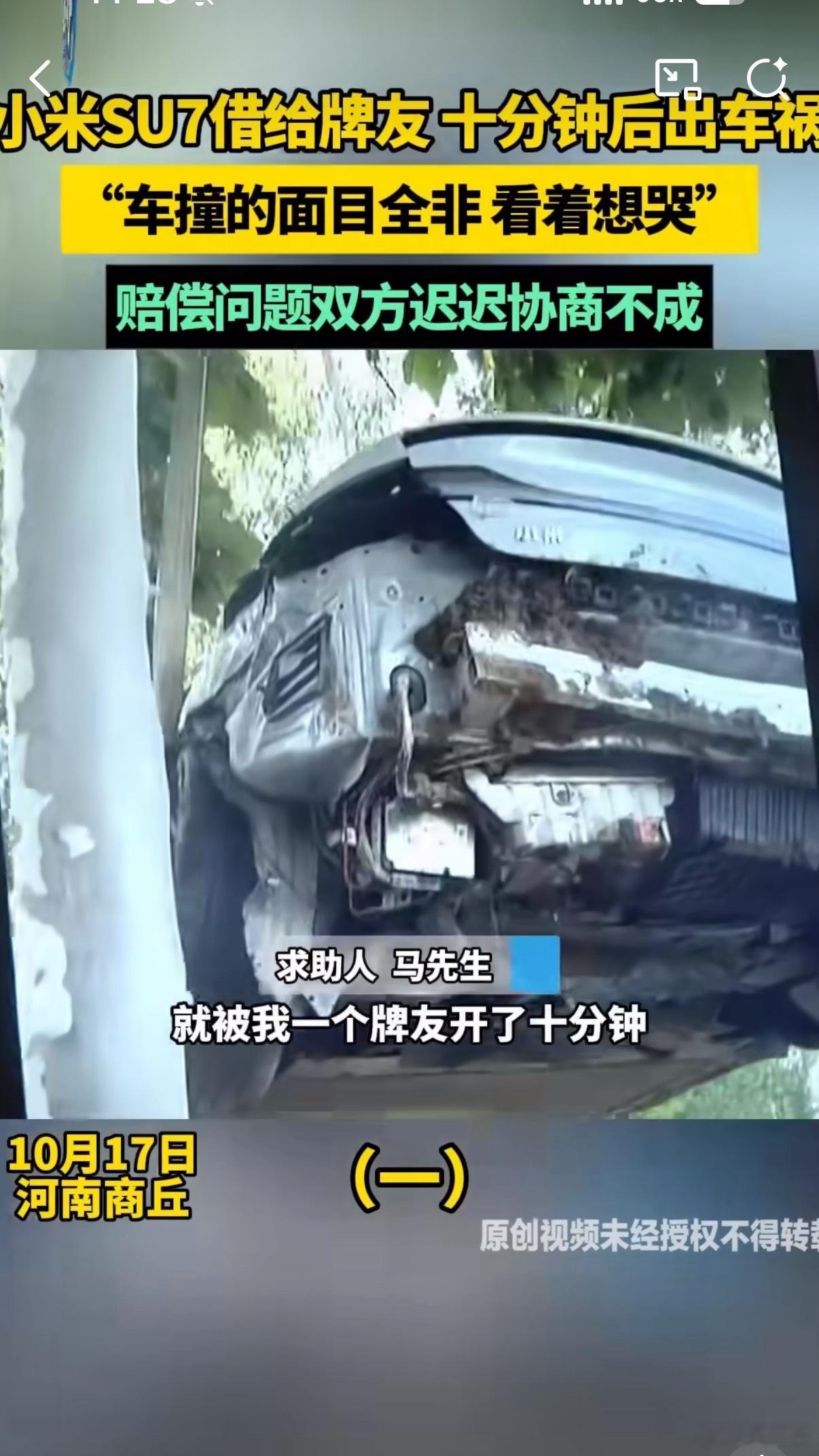 小米SU7借朋友开10分钟被撞烂熟悉的感觉又来了,把车借给牌友结果不到十分钟就出车祸,怎么看不都是人的问题吗……[允悲]