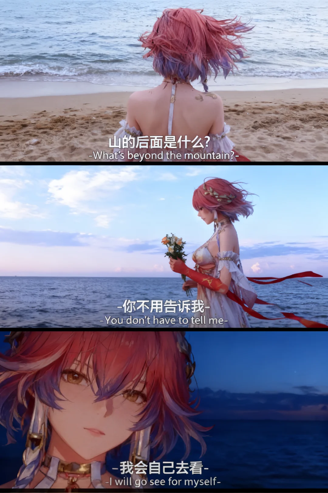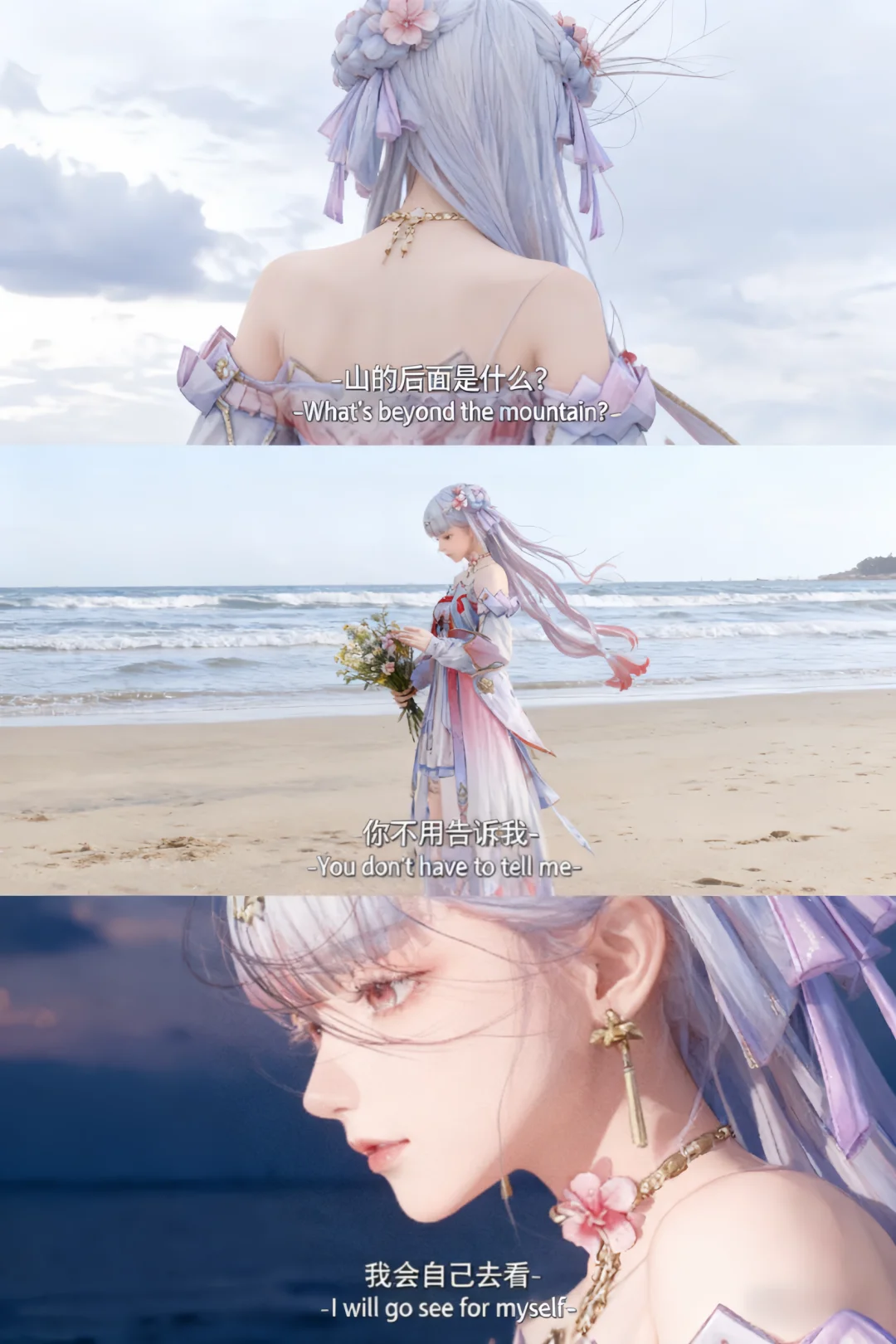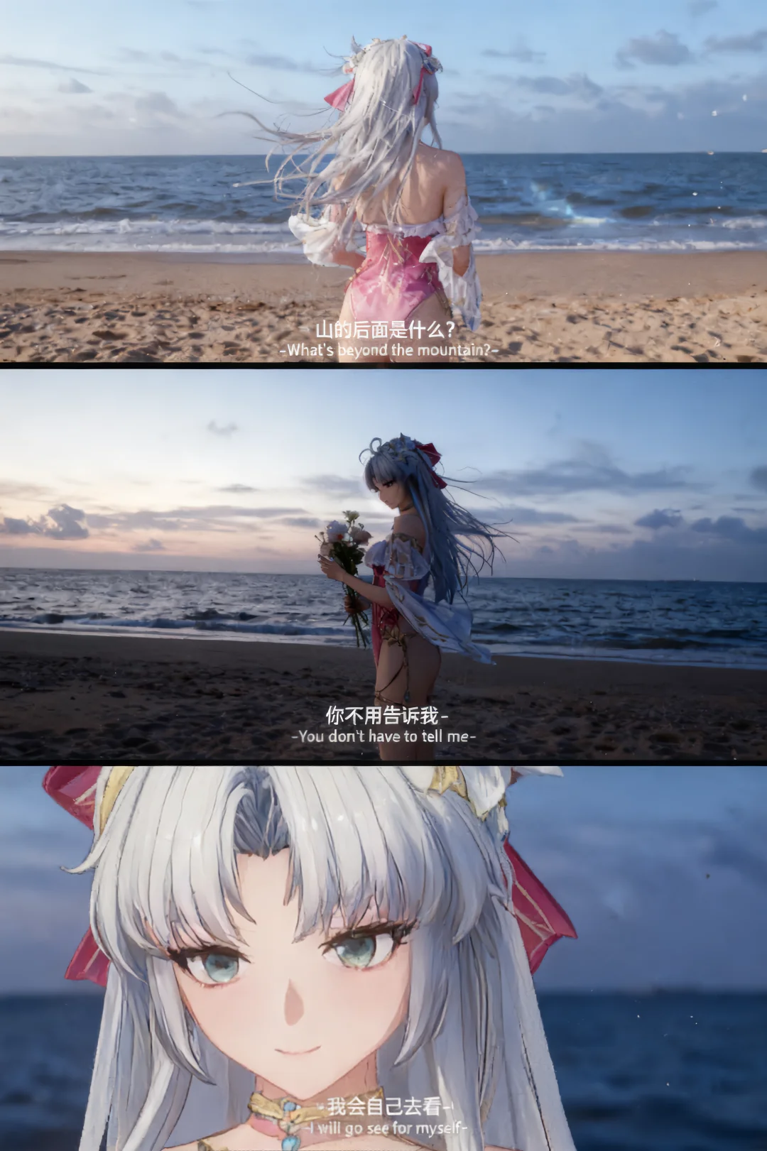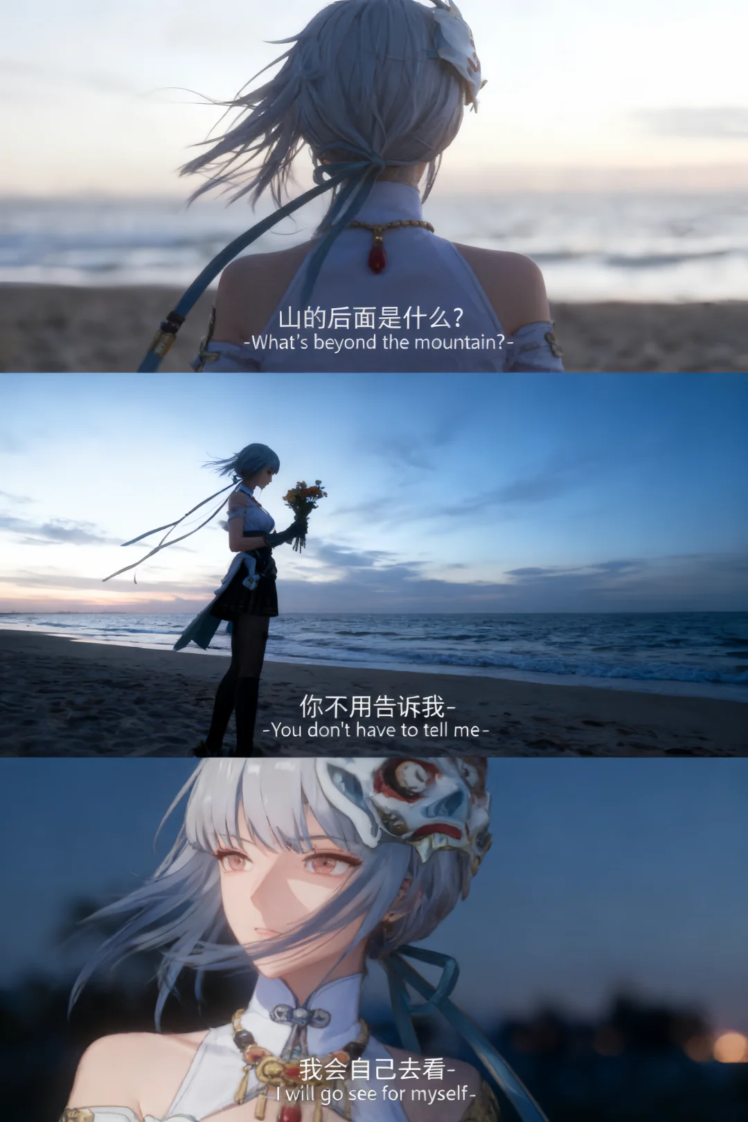鸣潮 鸣潮创作激励 踏上鸣日的征程 鸣潮二创 在山的那边 海边 带着花束,迎着海风,用脚步去丈量、用眼睛去见证—— “你不用告诉我,我会自己去看。”