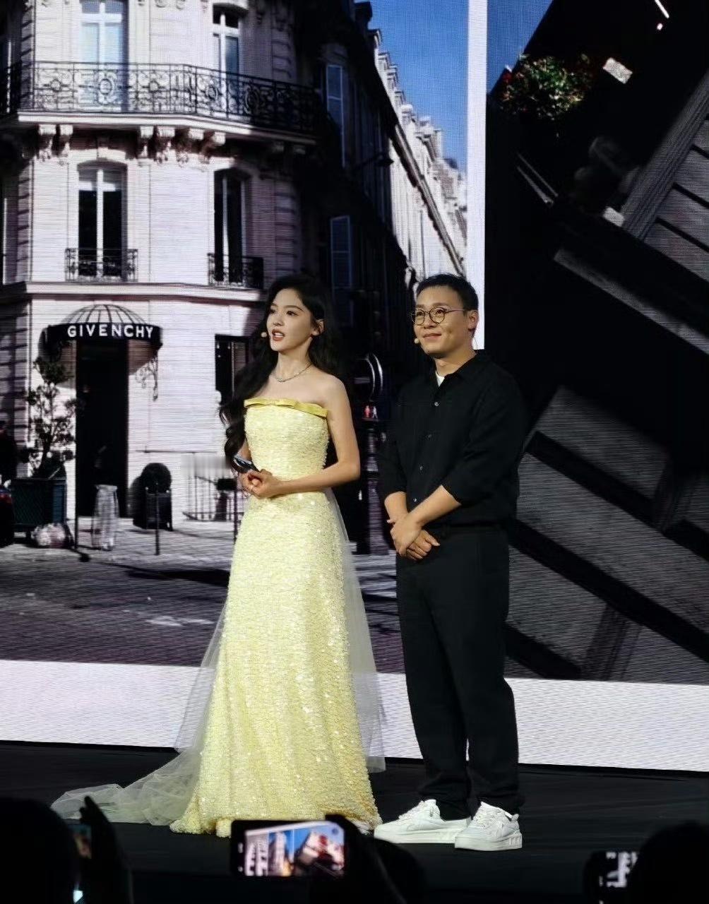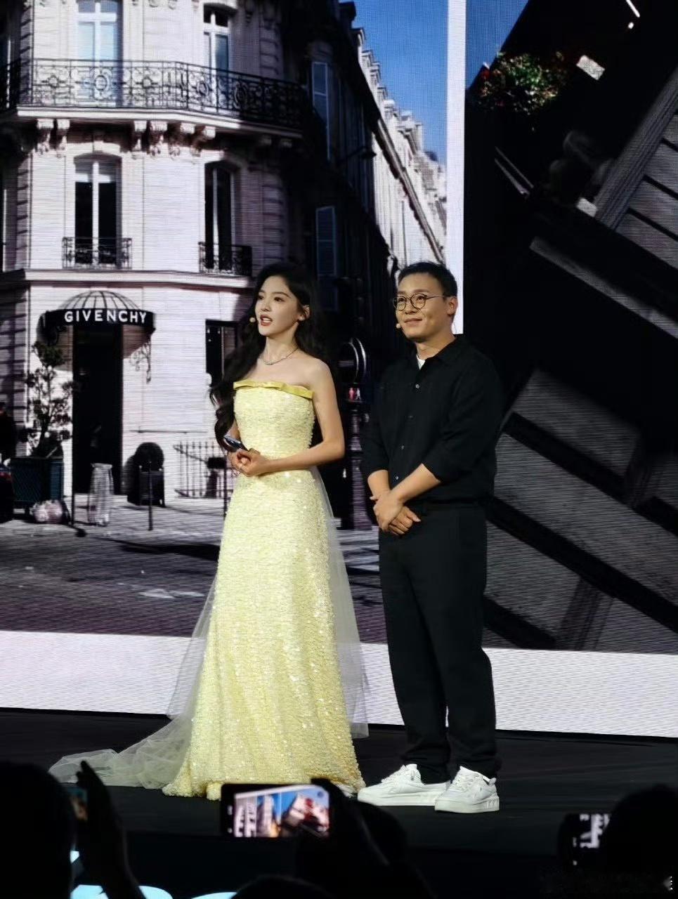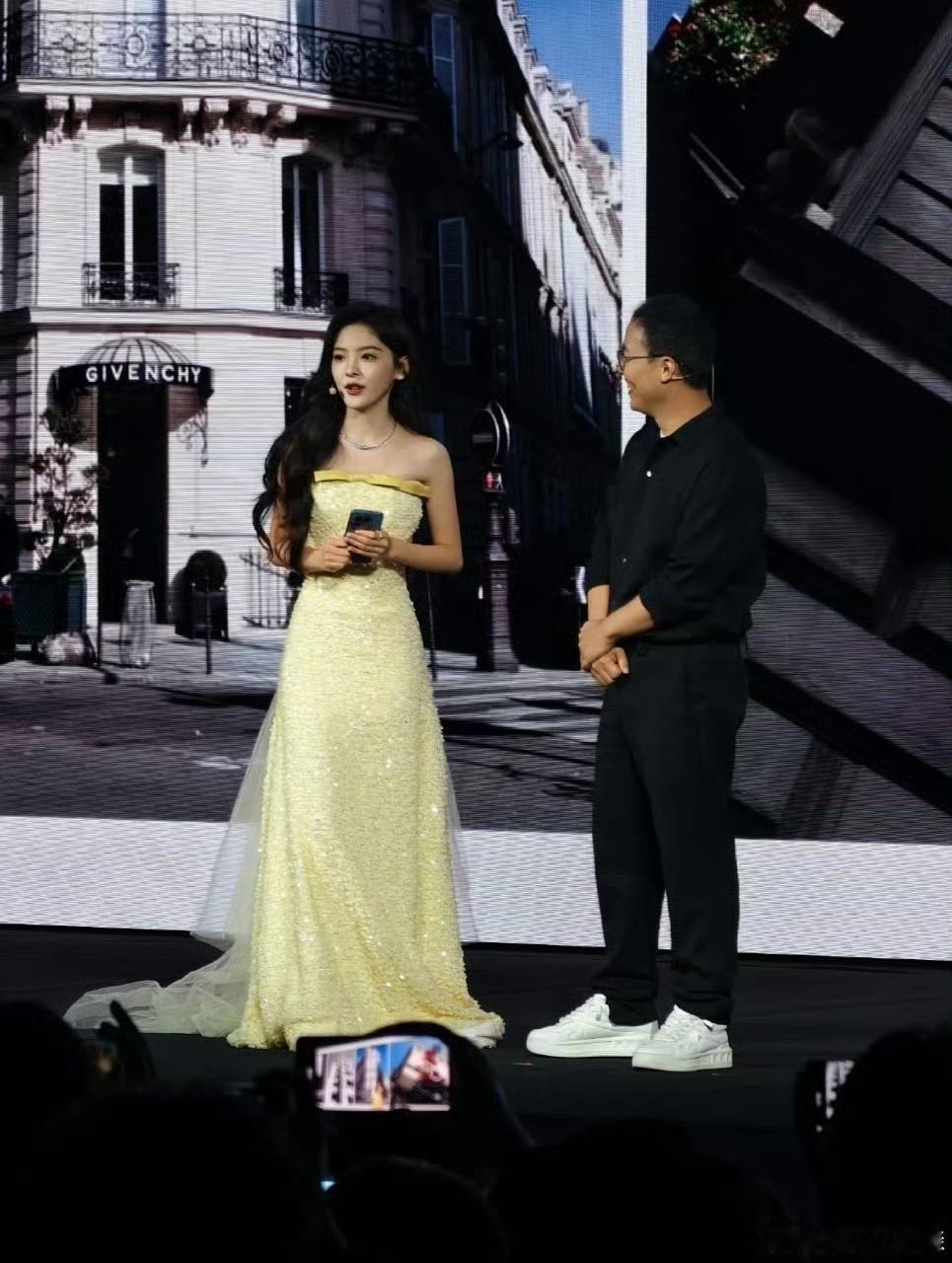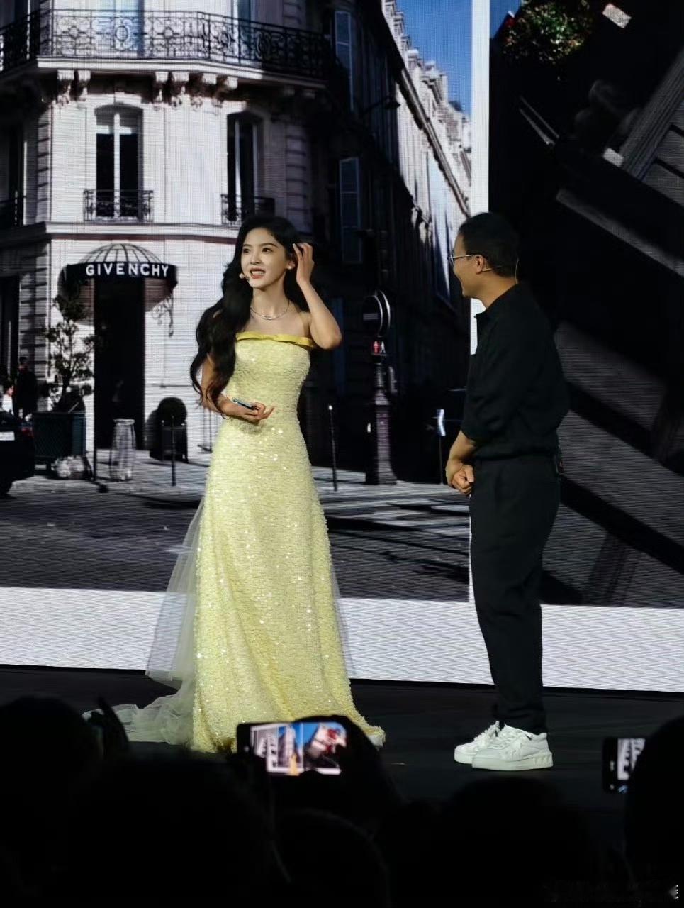 娱乐[超话]章若楠鹅黄碎钻抹胸裙 章若楠最新造型,鹅黄色抹胸群好美!章若楠鹅黄色抹胸拖尾裙